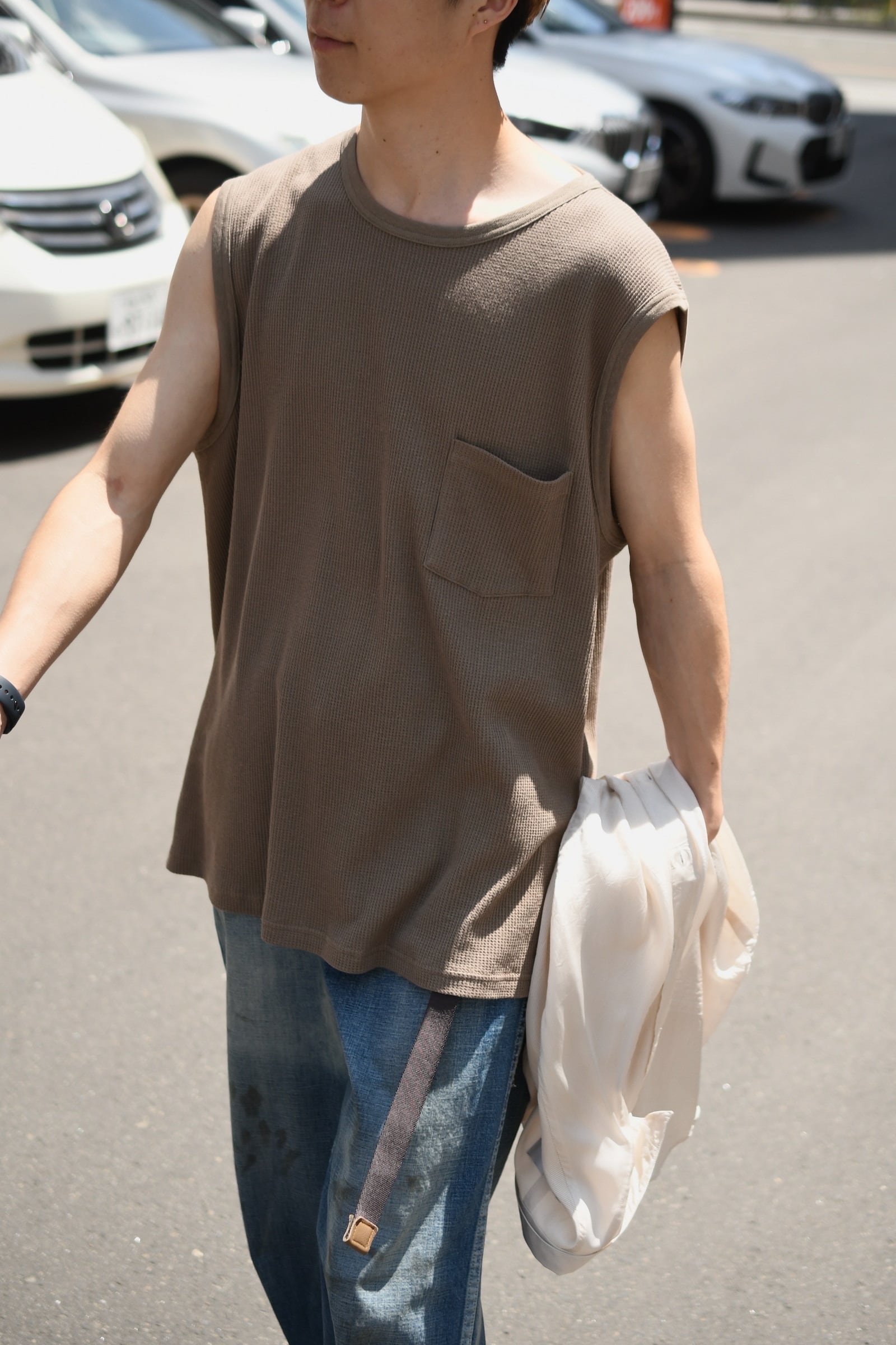 中に忍ばせて着る”縁の下の力持ち的存在”として位置付けられているノースリーブだが、インナーだけでなく単体で着る事にも抵抗を感じさせないという2面性があれば余計に魅力を覚える。