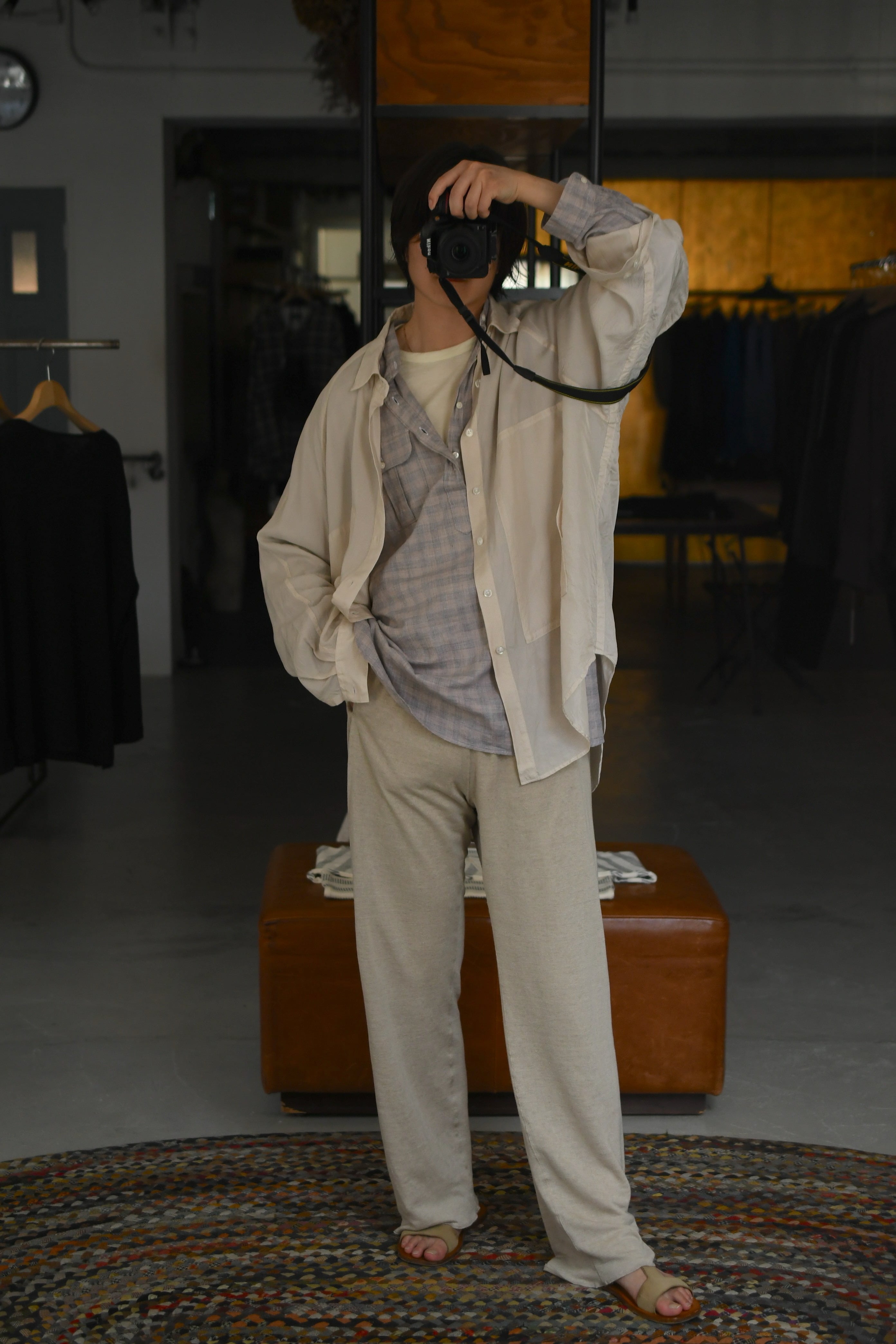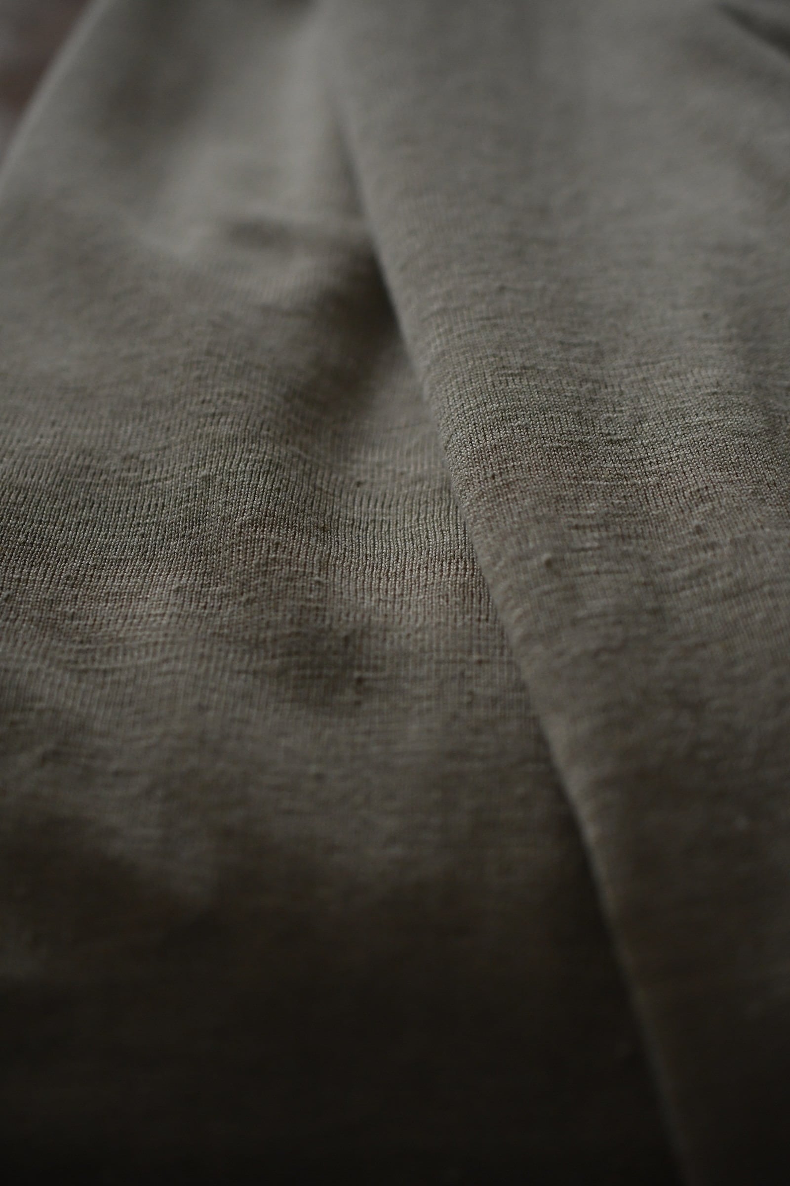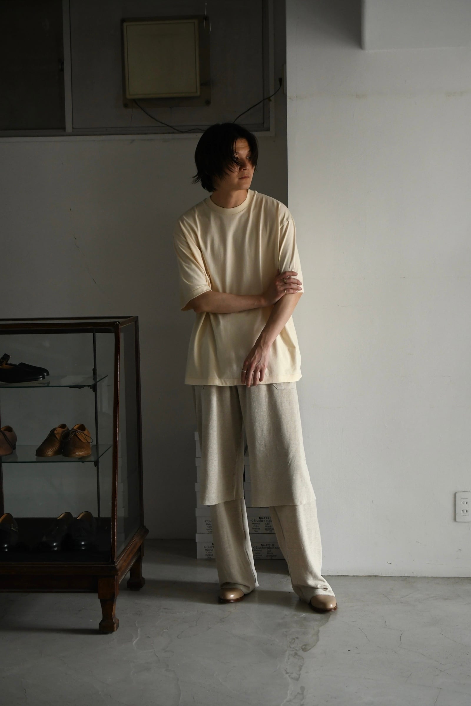 リネン本来の無垢で素朴な風合いによるラフい空気感を活かしつつも、その出立ちには不思議と凛とした存在感が宿っており、ブランドの大きな強みである卓越したパターンの美しさが感じ取れる。