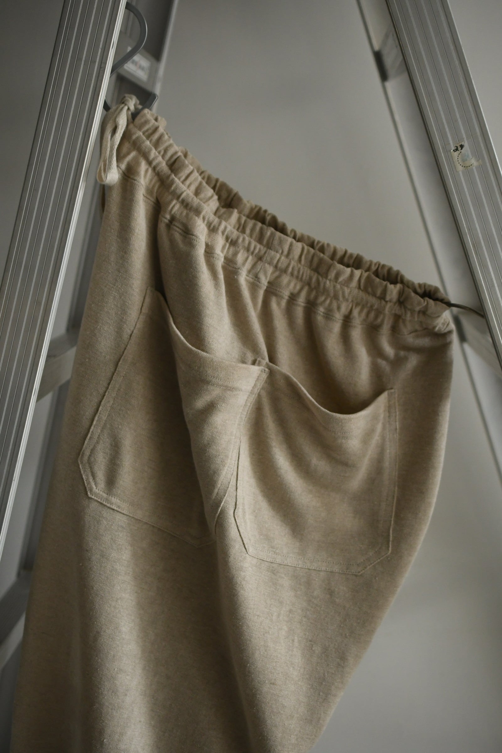 両面ともにリネン素材の共地で体感的には全く暑さを感じず、穿き心地は抜群に快適である。