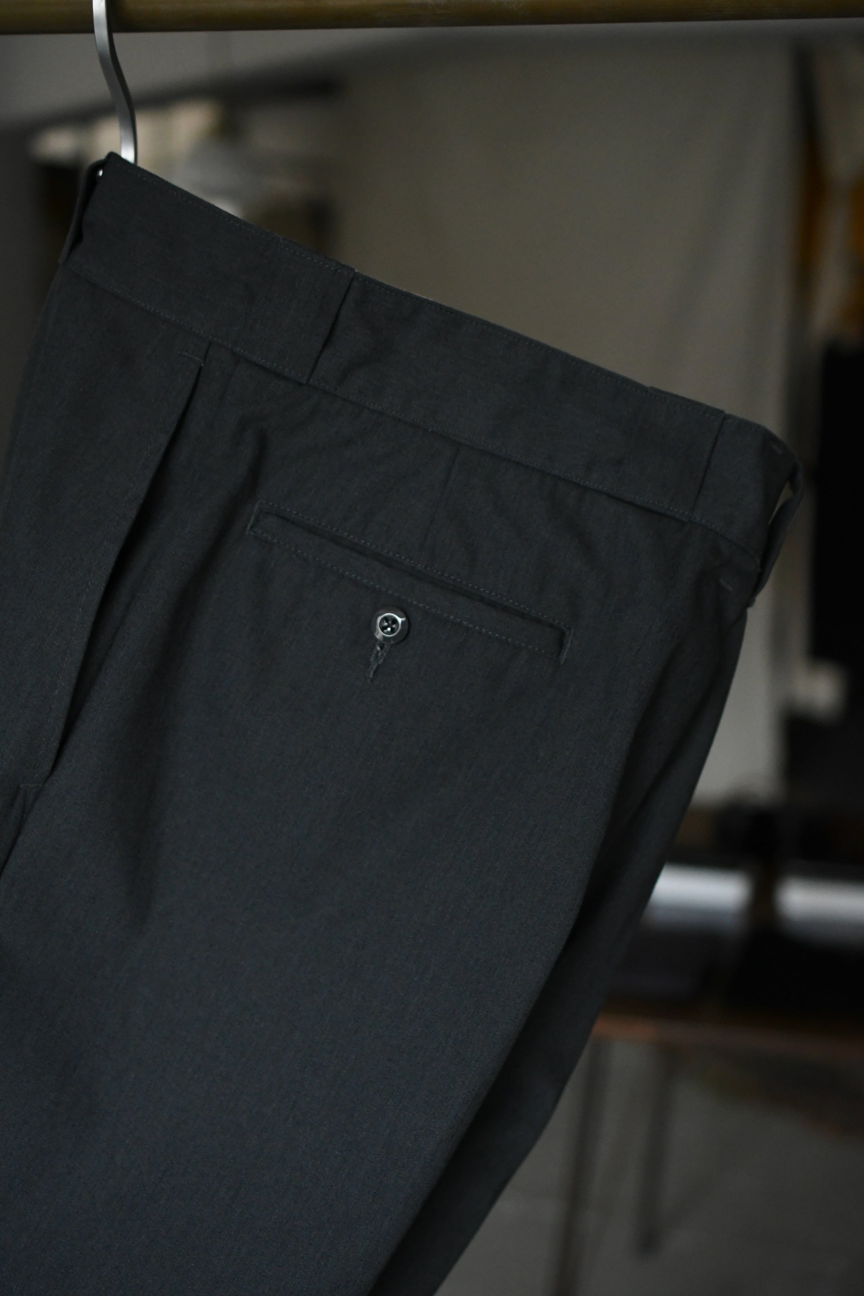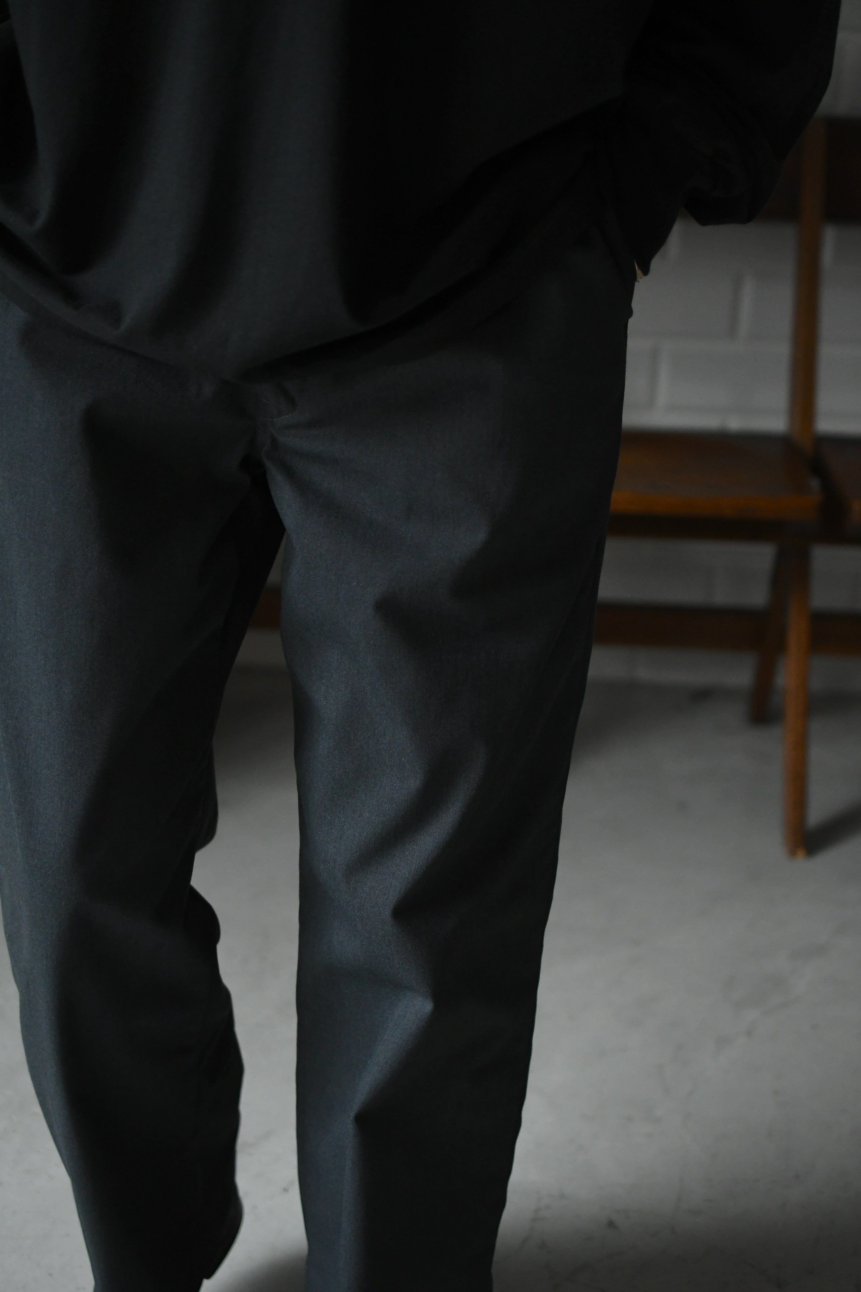 軽やかだがシワが出来にくく、常に綺麗な出立ちを魅せるその佇まいは、カジュアルでありながら不思議と品の良さがあり、合わせ知らずの色味も総じて普遍的な片鱗を強く感じさせる1本だ。