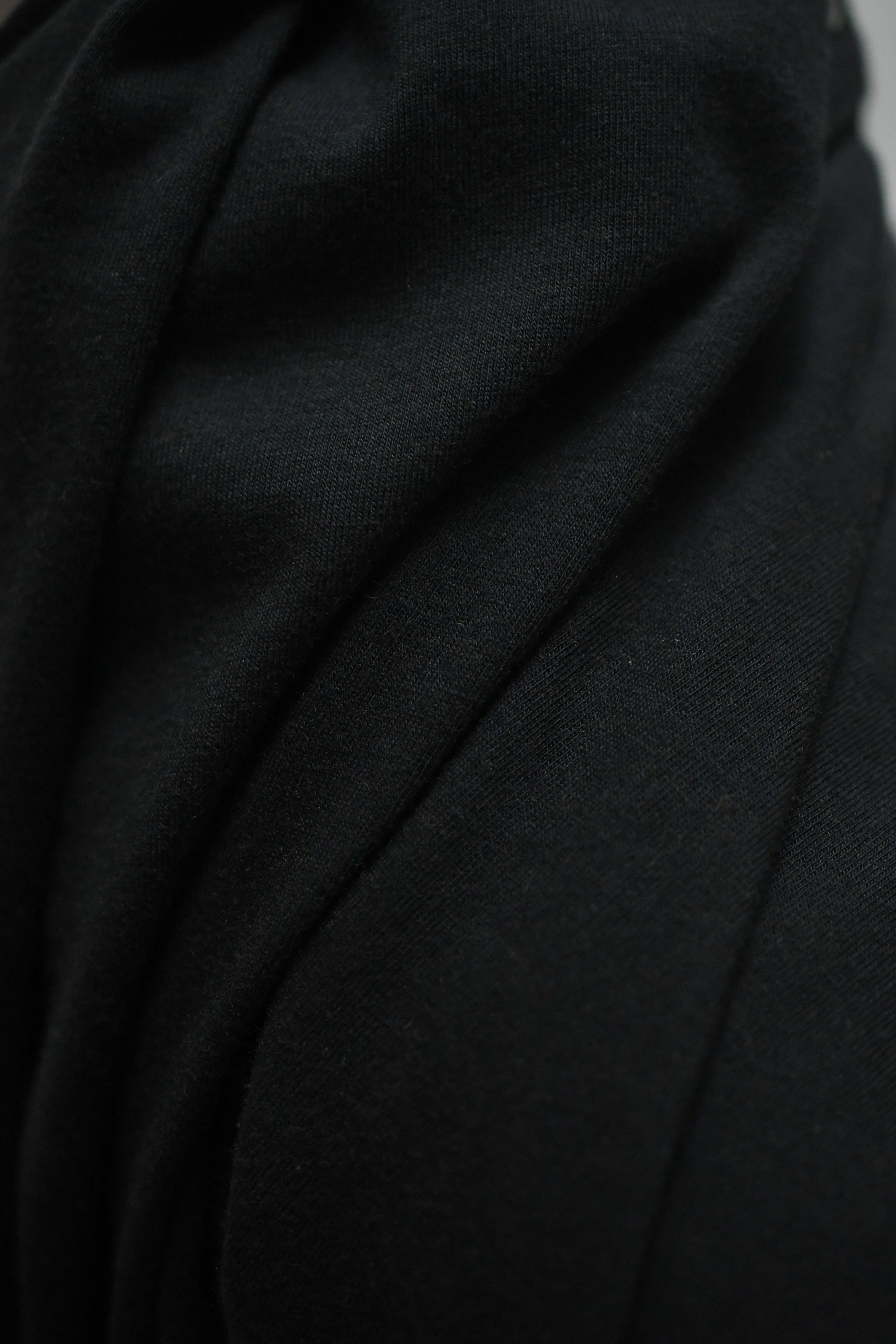 敢えてロック始末の縫製で仕立てあげられており、1枚でも着れるようにシルエットはゆとりを持たせながらも袖にはリブが与えられ、程よくメリハリがある。