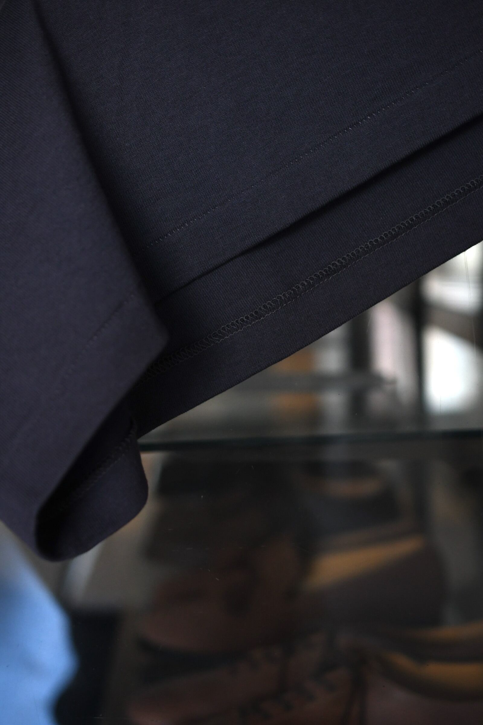 衿は、リブの幅を抑えながら少しだけ首元に詰まらせた設計で、適度に力を抜いたようなラフさが良い。また、タコバインダー仕様で伸びに強く、型崩れし難いという耐久性の面でも大きな信頼が寄せられる。