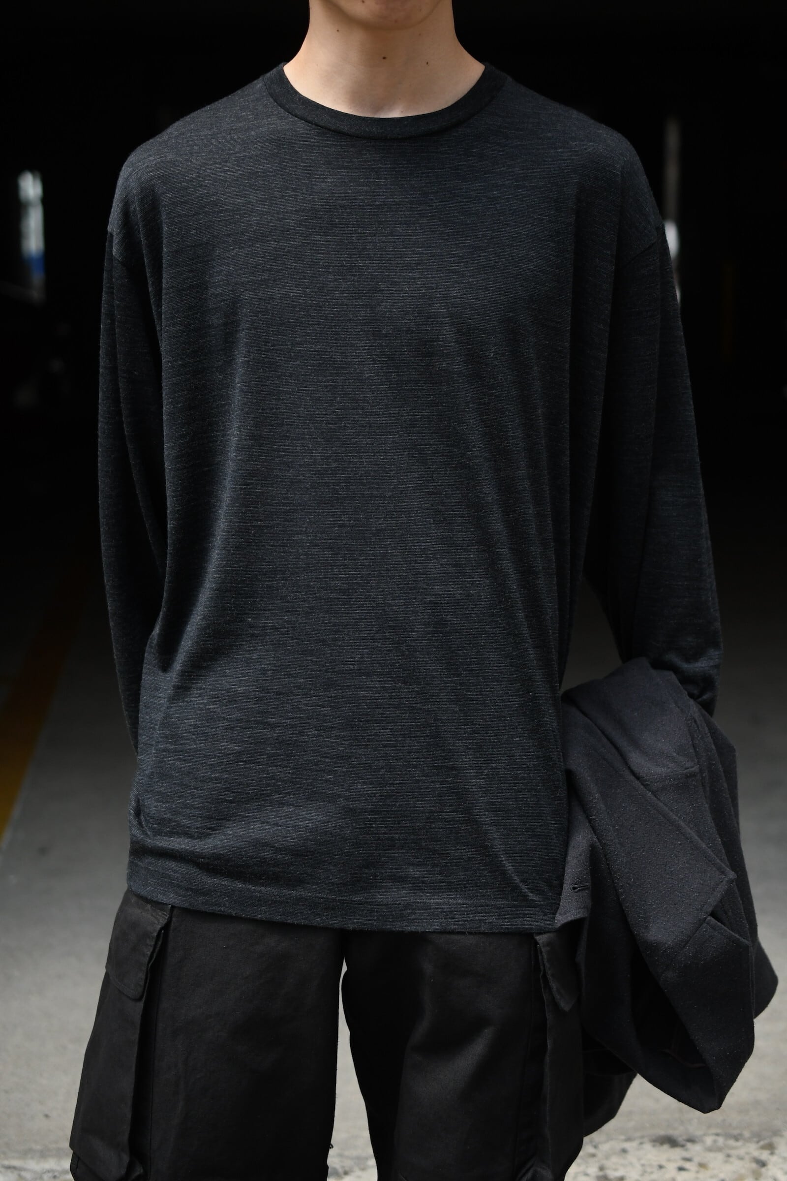BATONER / WOOL CREW NECK LONG SLEEVE T-SHIRT (CHARCOAL)