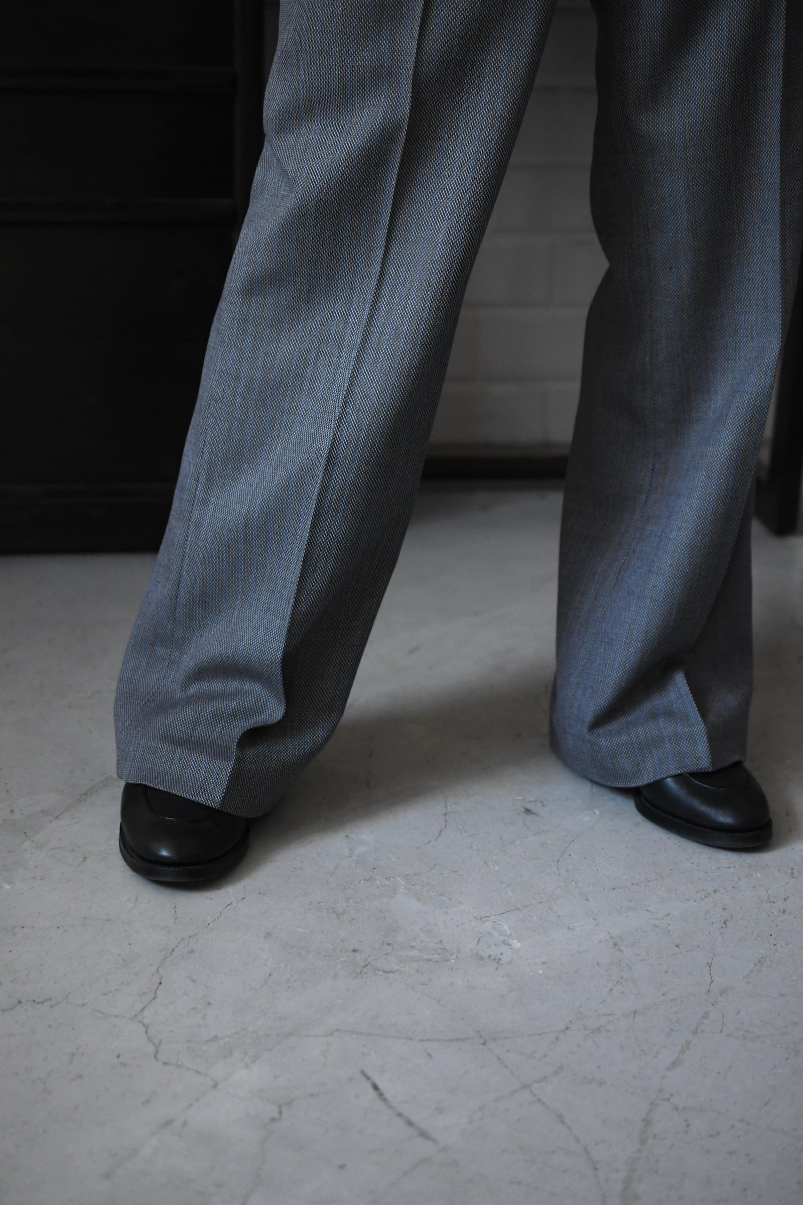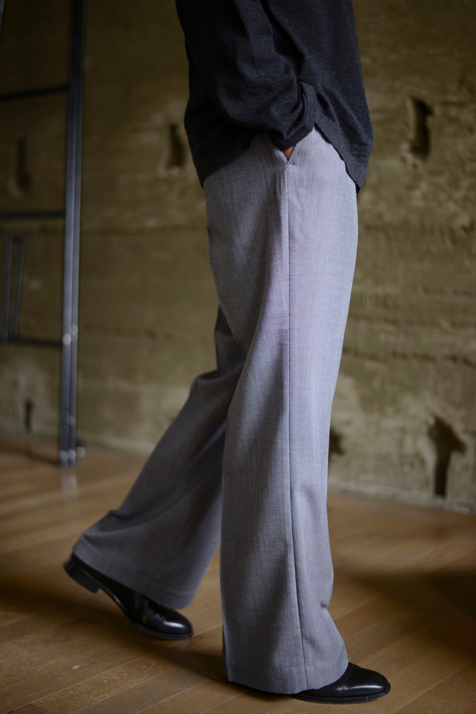 国産のデッドストックによる希少な生地を用いて製作頂いたテーマは『ラフに履けるちょいフレアのスラックス』