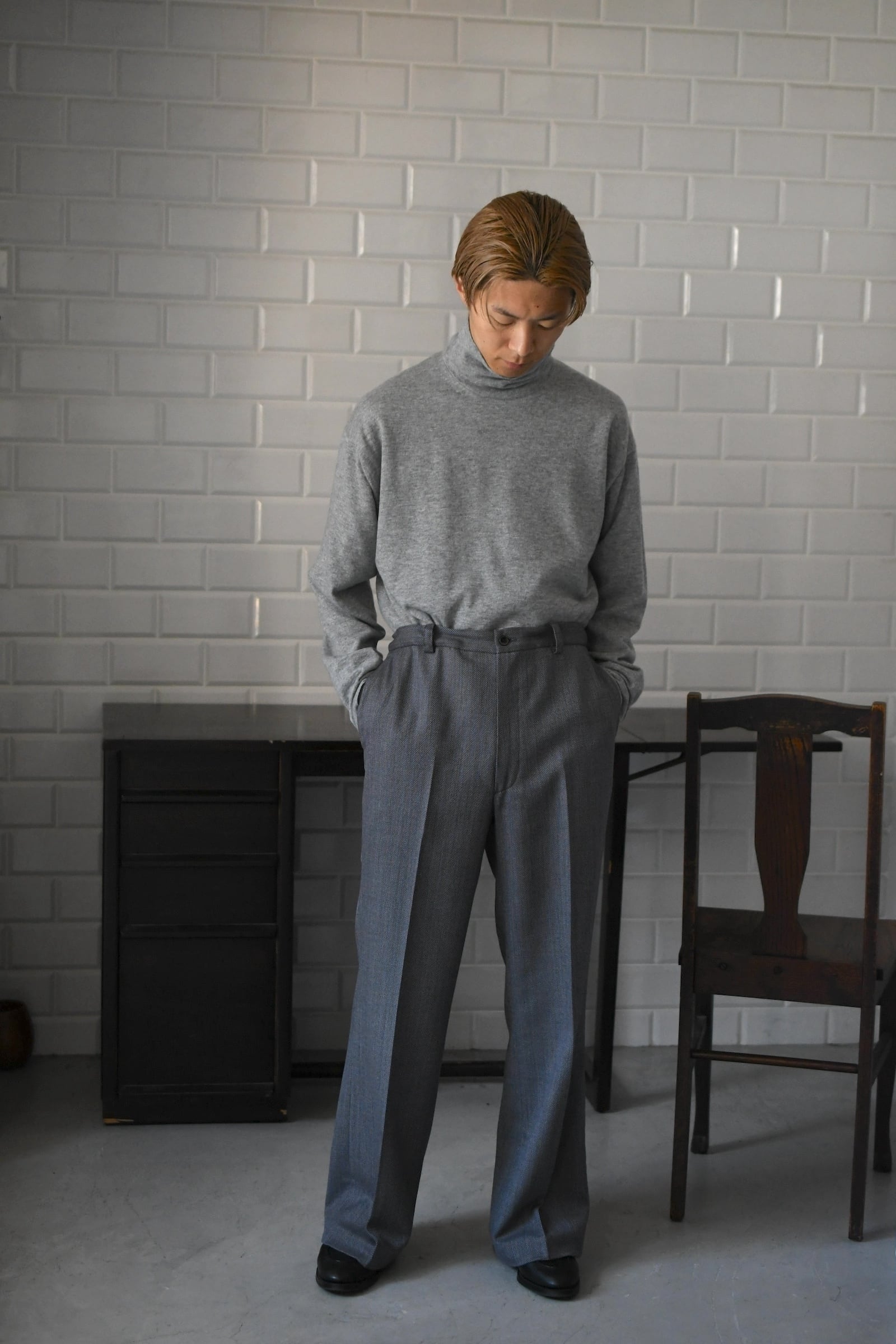 少しサイズアップのスラックスを適当に履いて決まる感じがやりたくて、そのままの要望をデザイナーの中出さんにお伝えして当店のみの形を特別に制作をして頂きました。