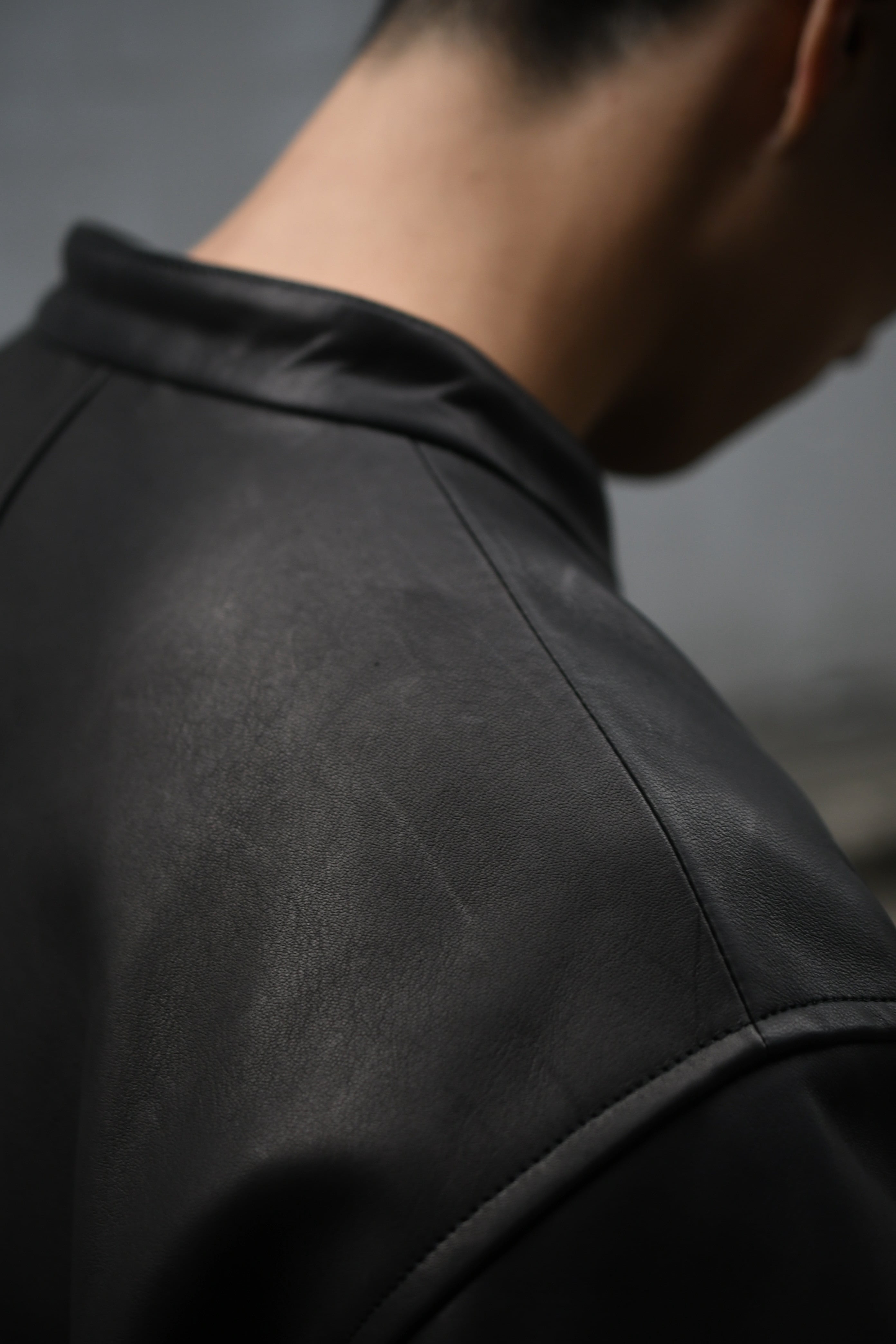 そしてもう1つ『着れてしまう』大きな理由は、襟やリブ等の装飾を排したフロントジップ型というハードさから距離を取ったミニマルで落ち着いたデザインであり、より一層ラムの繊細で凛とした革の魅力が引き出されている。