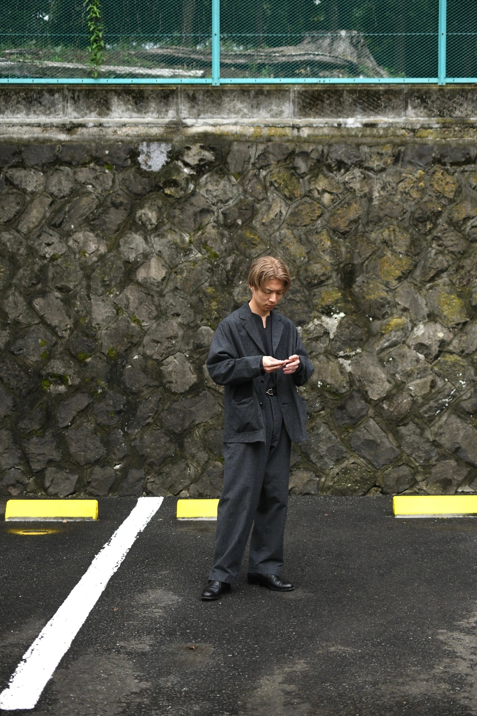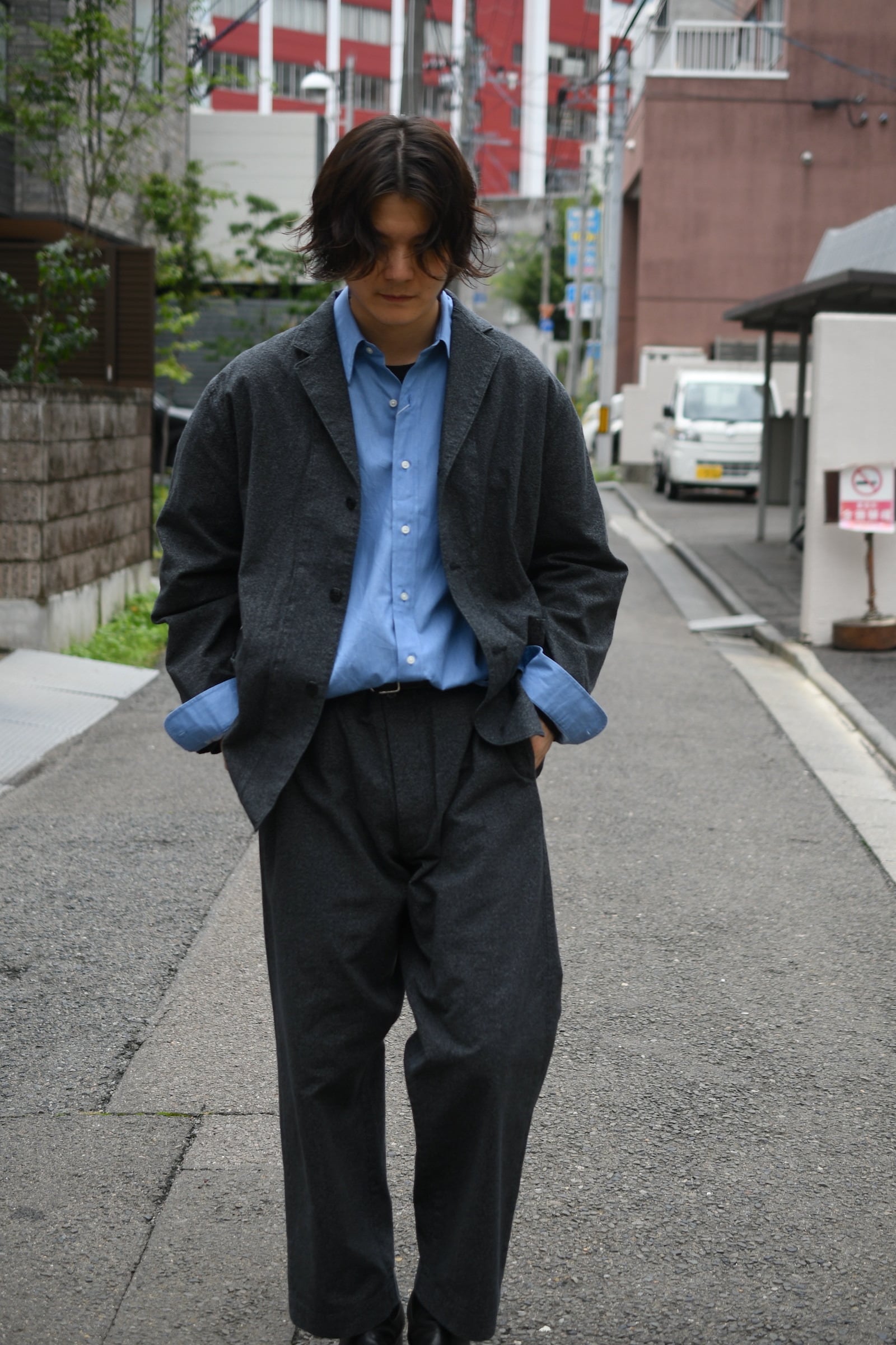 そして薄手の物に使われている事が比較的多く、本来のシーズンは春夏がメインとなるのだが、HERILLがオリジナルで製作した黒シャンは組織はそのままに織りを工夫している事で少し肉感があり、長いシーズンで身に纏う事を可能としている。