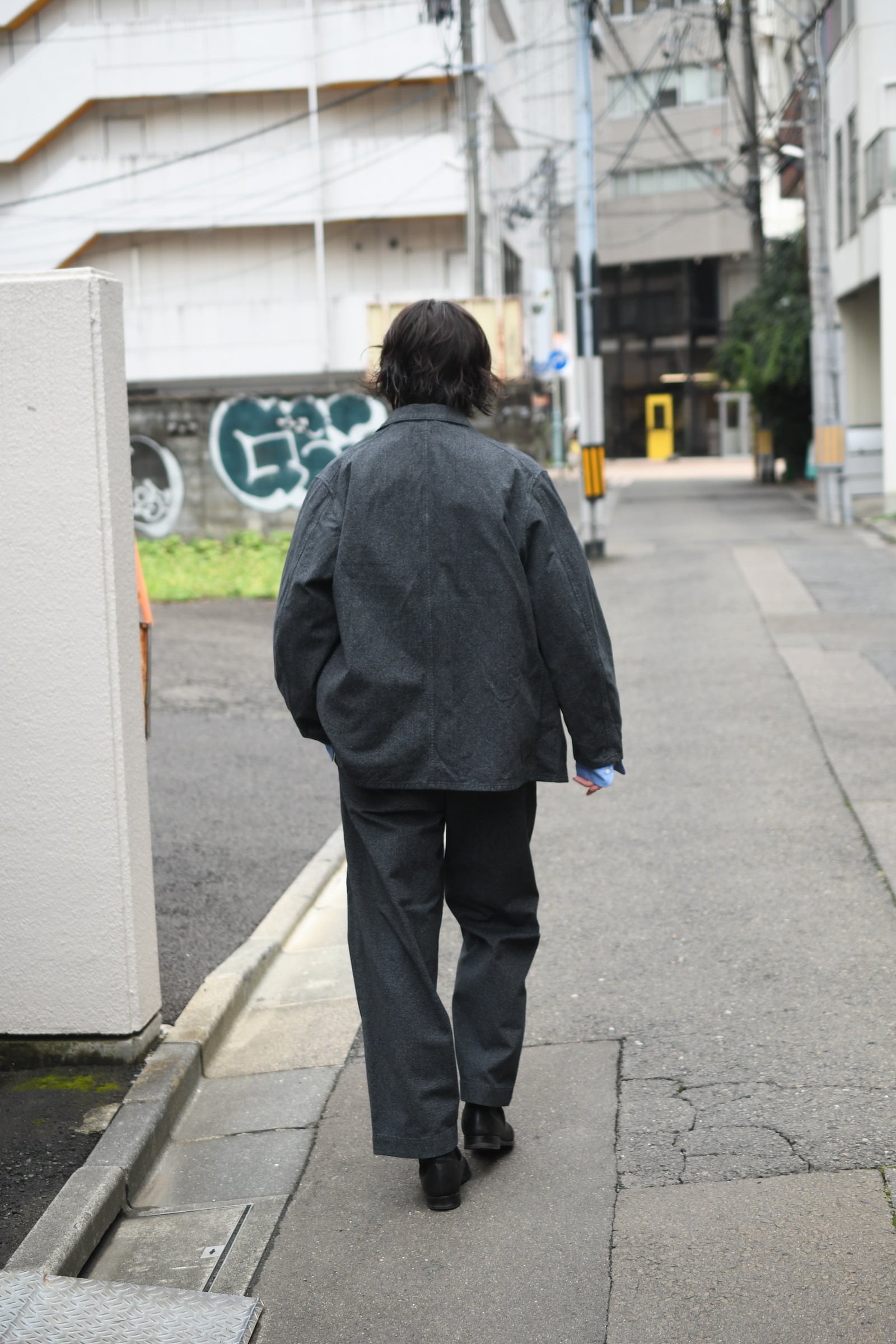 最初は少しハリを感じると思うがそれは間違いなくこの生地の伸び代であり、洗いと着用頻度に伴って毛羽立ちながら徐々に柔らかく育っていく。