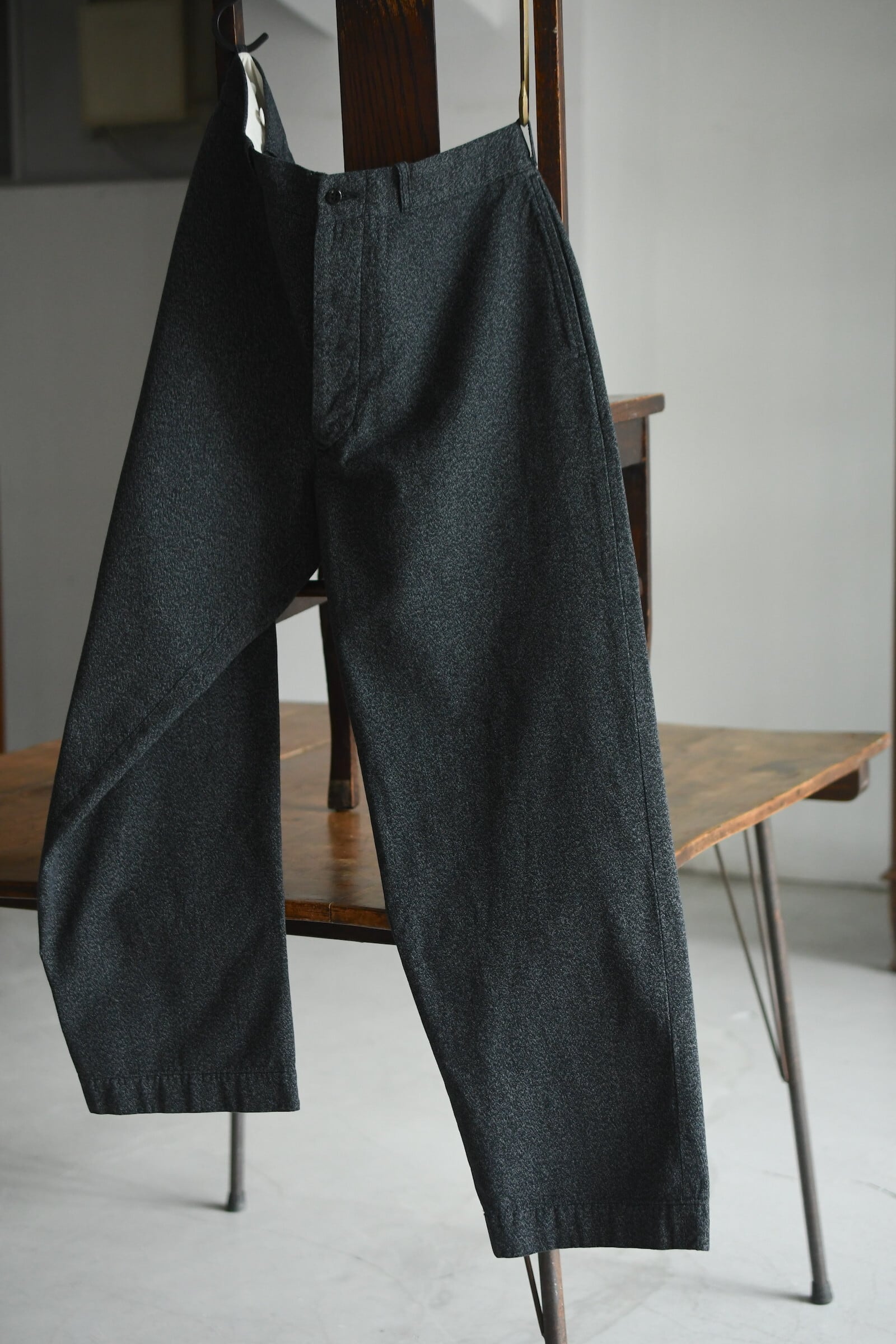 最初は少しハリを感じると思うがそれは間違いなくこの生地の伸び代であり、洗いと着用頻度に伴って毛羽立ちながら徐々に柔らかく育っていく。