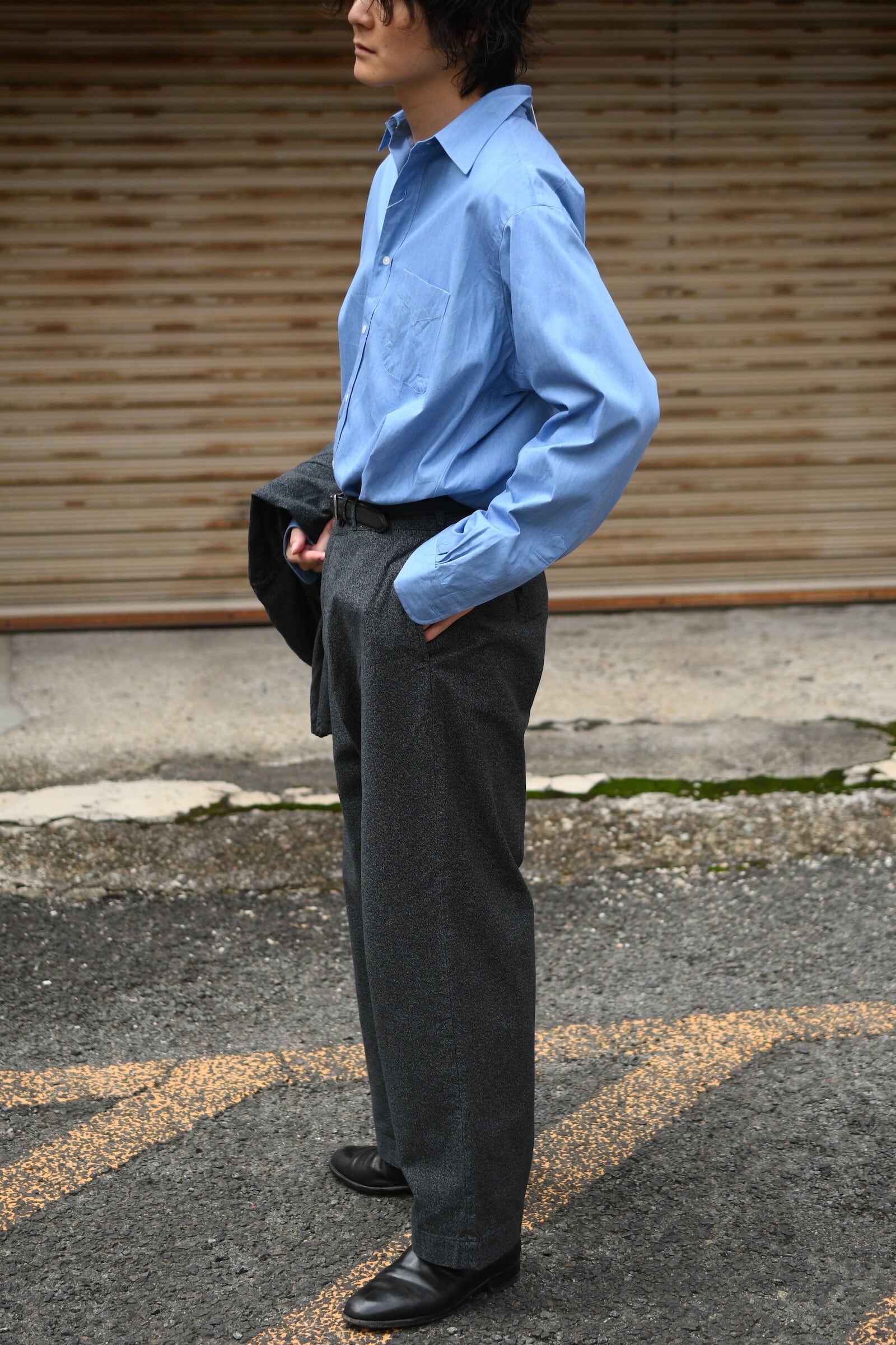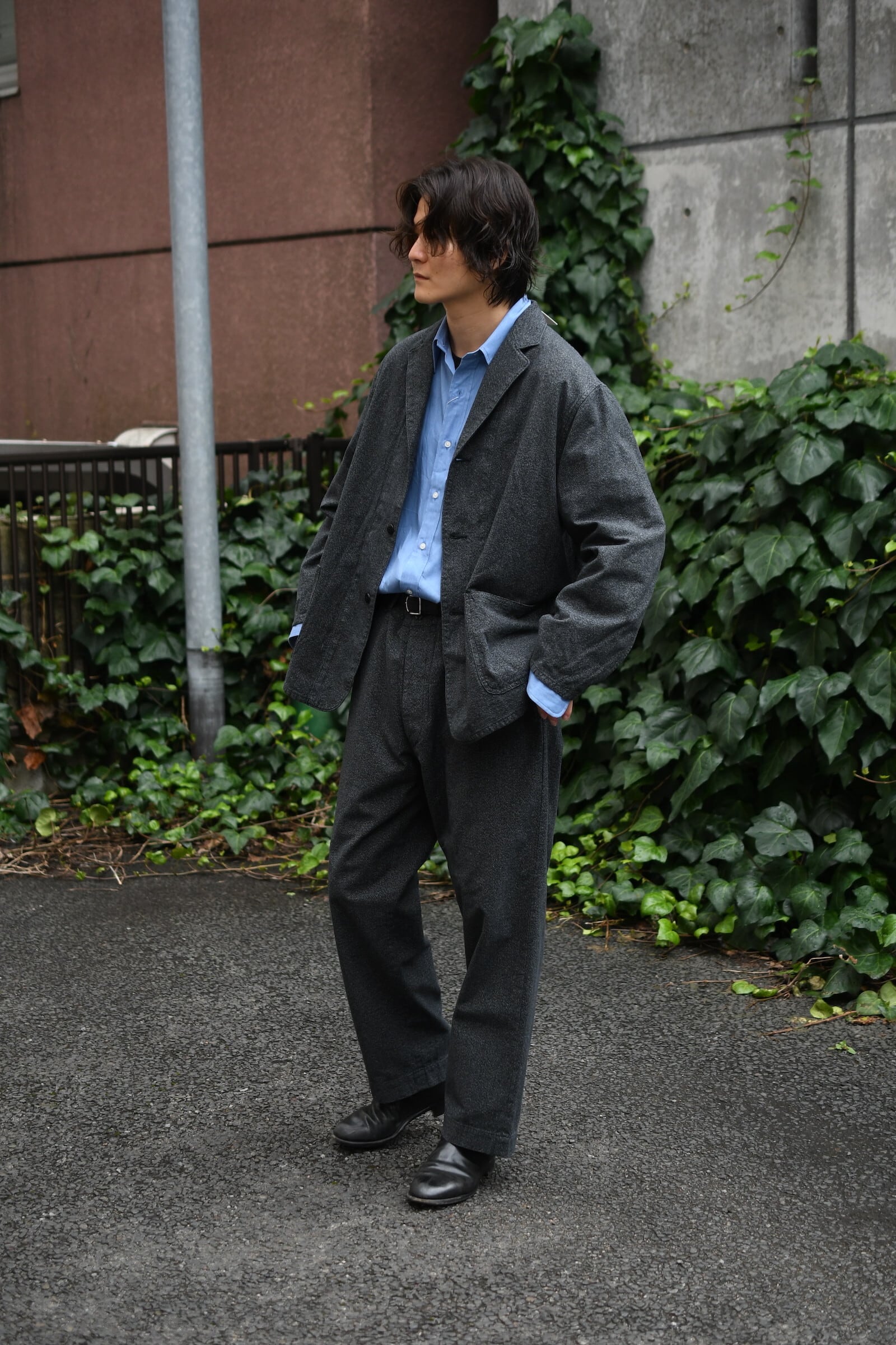 そして薄手の物に使われている事が比較的多く、本来のシーズンは春夏がメインとなるのだが、HERILLがオリジナルで製作した黒シャンは組織はそのままに織りを工夫している事で少し肉感があり、長いシーズンで身に纏う事を可能としている。