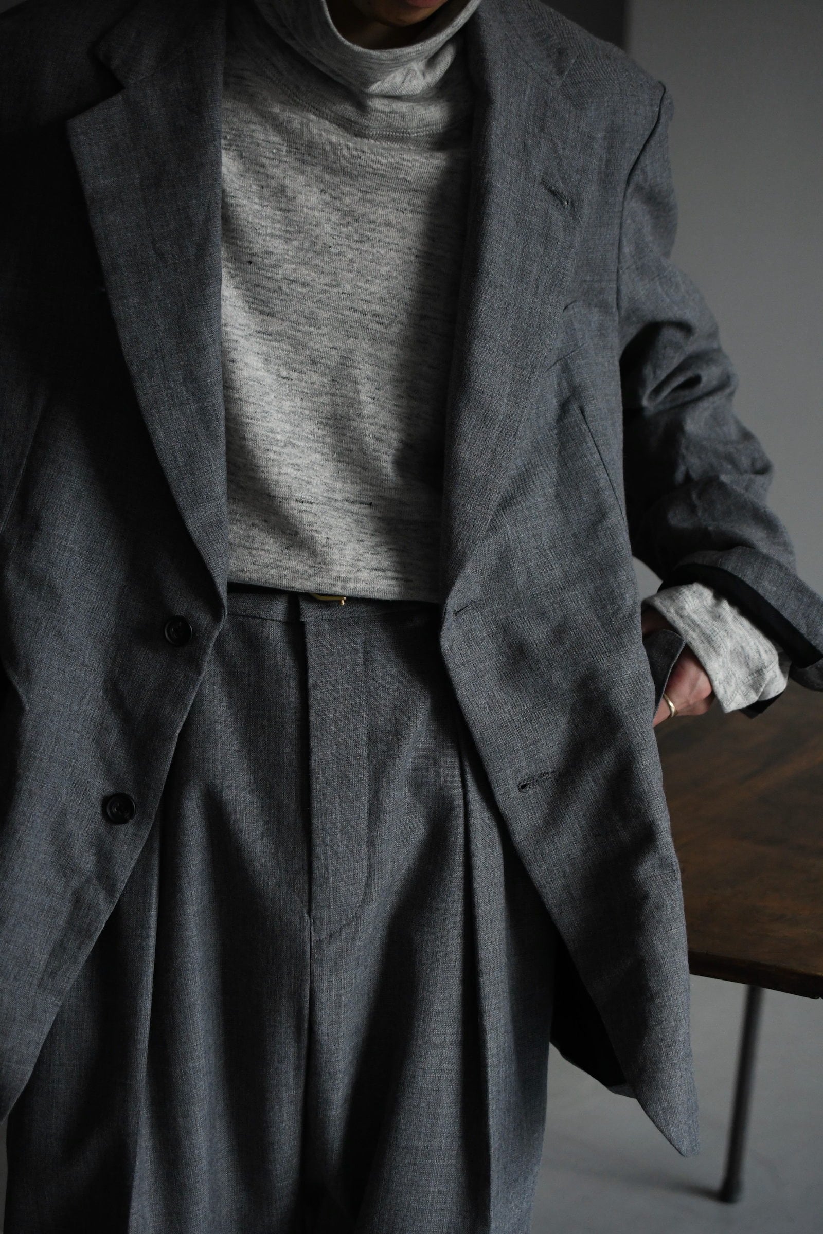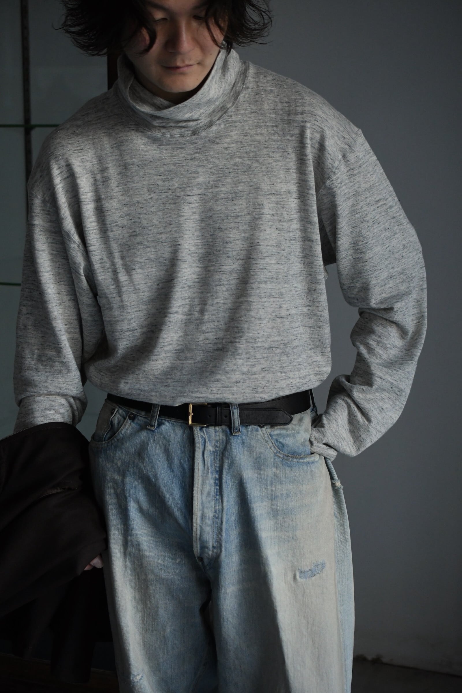 一見は杢グレーのゆったりとした普遍的なタートルカットソーに思えるが、知れば知るほどにどこにも存在しない奇天烈さがあり、一味も二味も楽しめられる事に気が付く筈である。