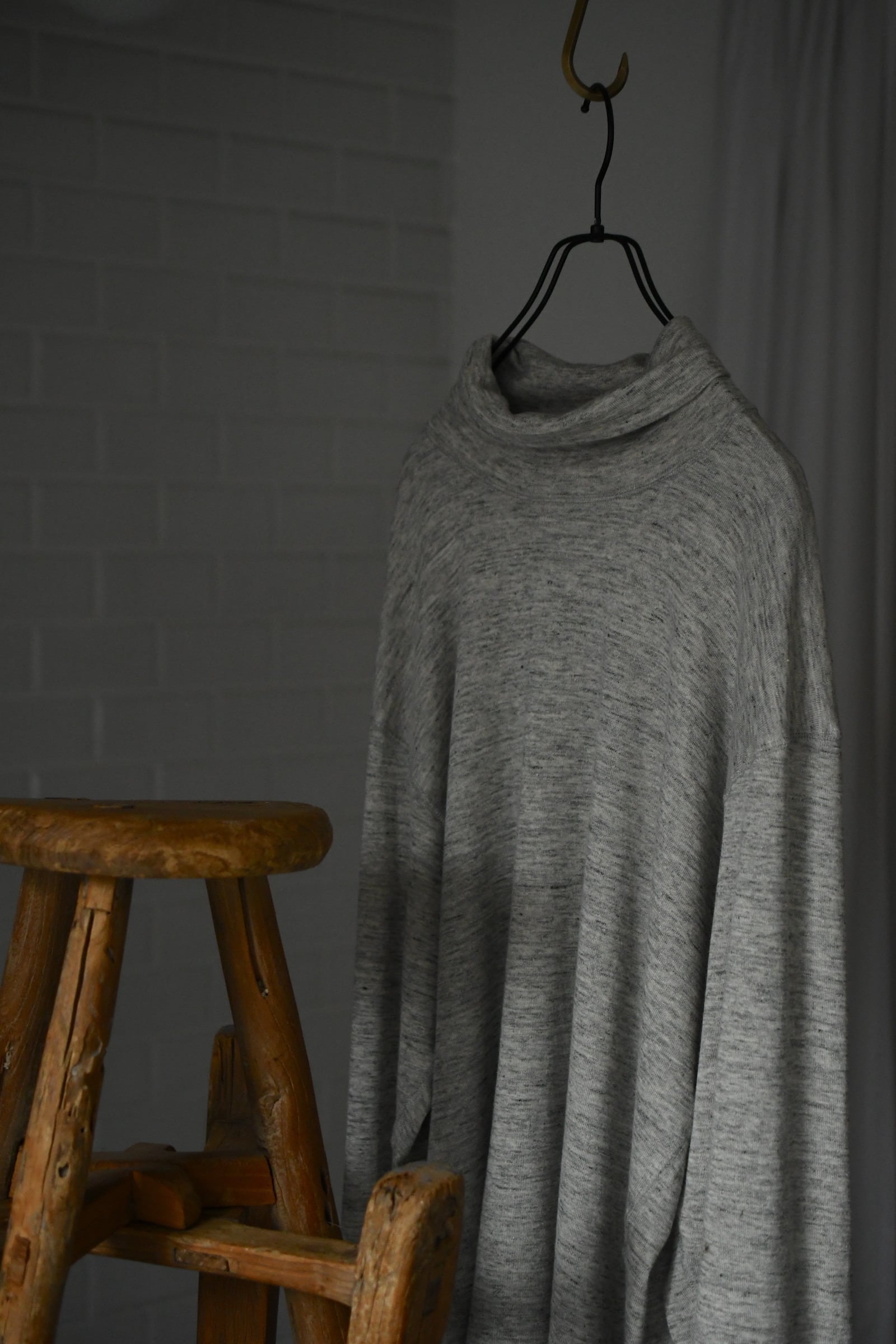 優しいタッチ感と杢調の豊かな表情を有するリネンコットンで仕立てられたリラックス感が溢れるタートルネックカットソー。
