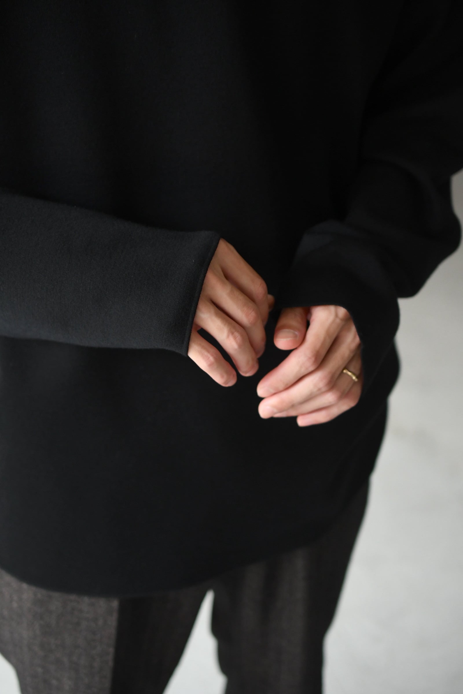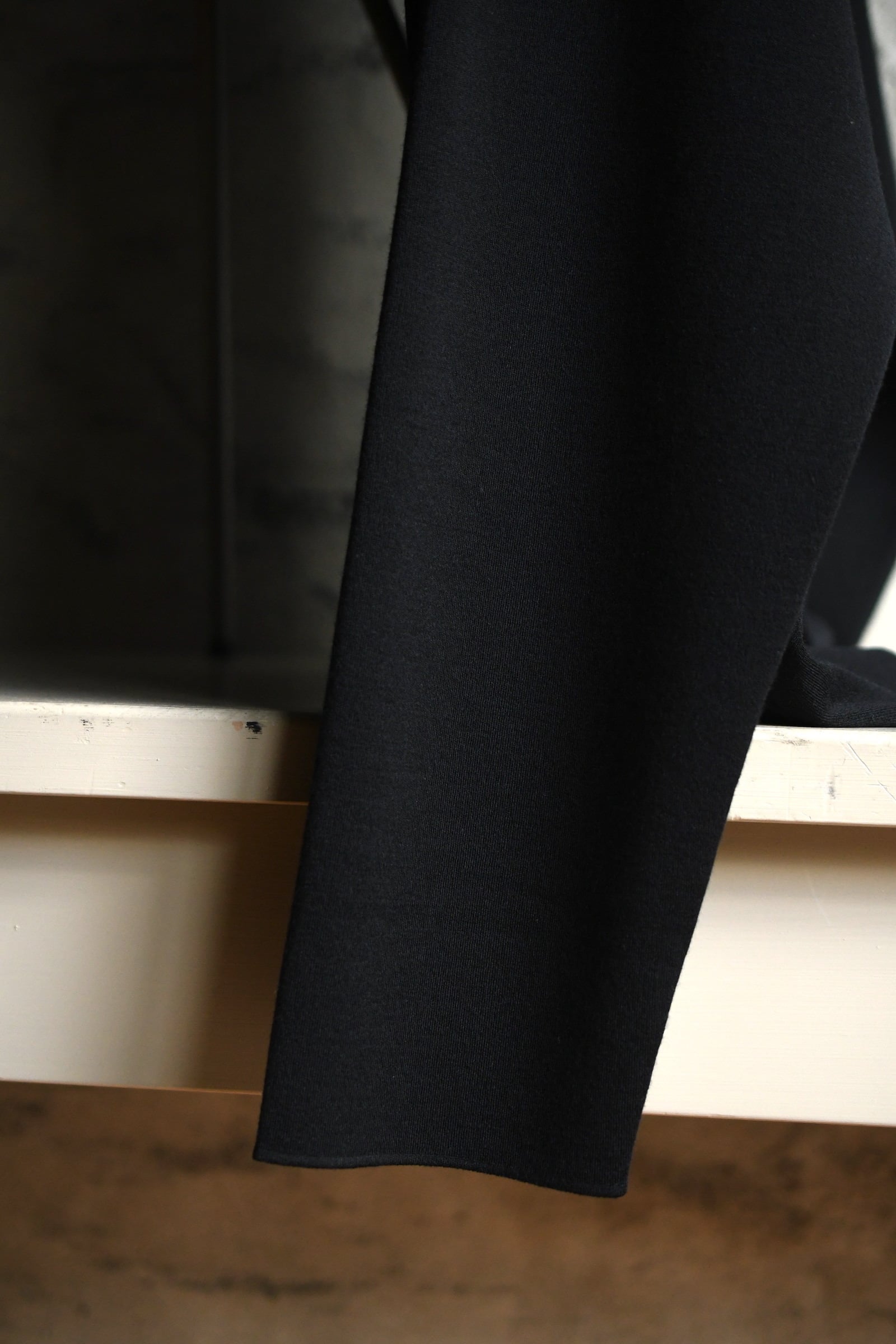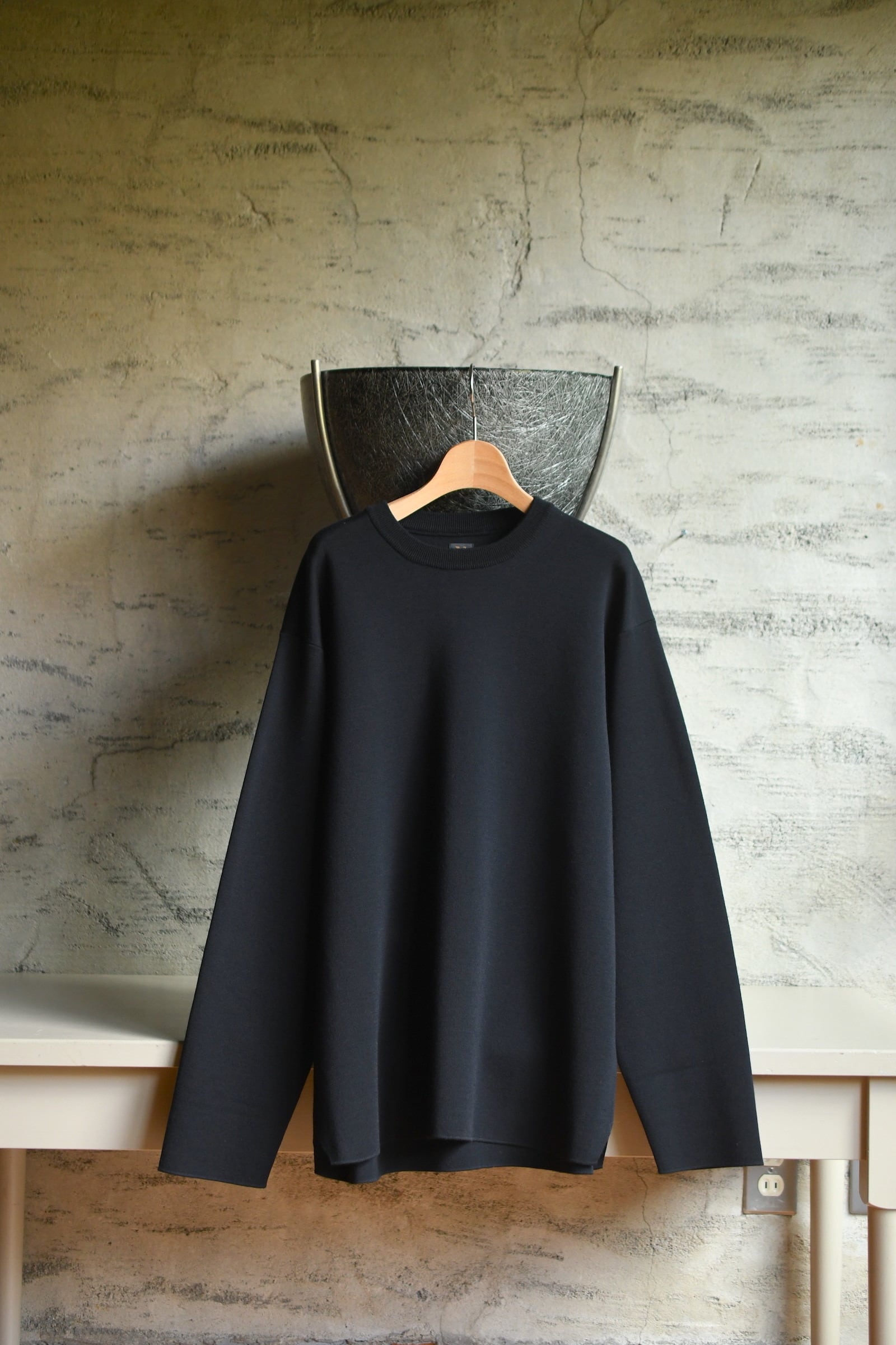 リブは無くスッキリとしており、さり気ないスリットや奥行きある上品な風合いも総じて不思議とエレガントさが漂い、生地自体にはしっかりと肉感も伴っている為、今時季のインナー使いからメインまで多岐に渡って活躍してくれる筈だ。