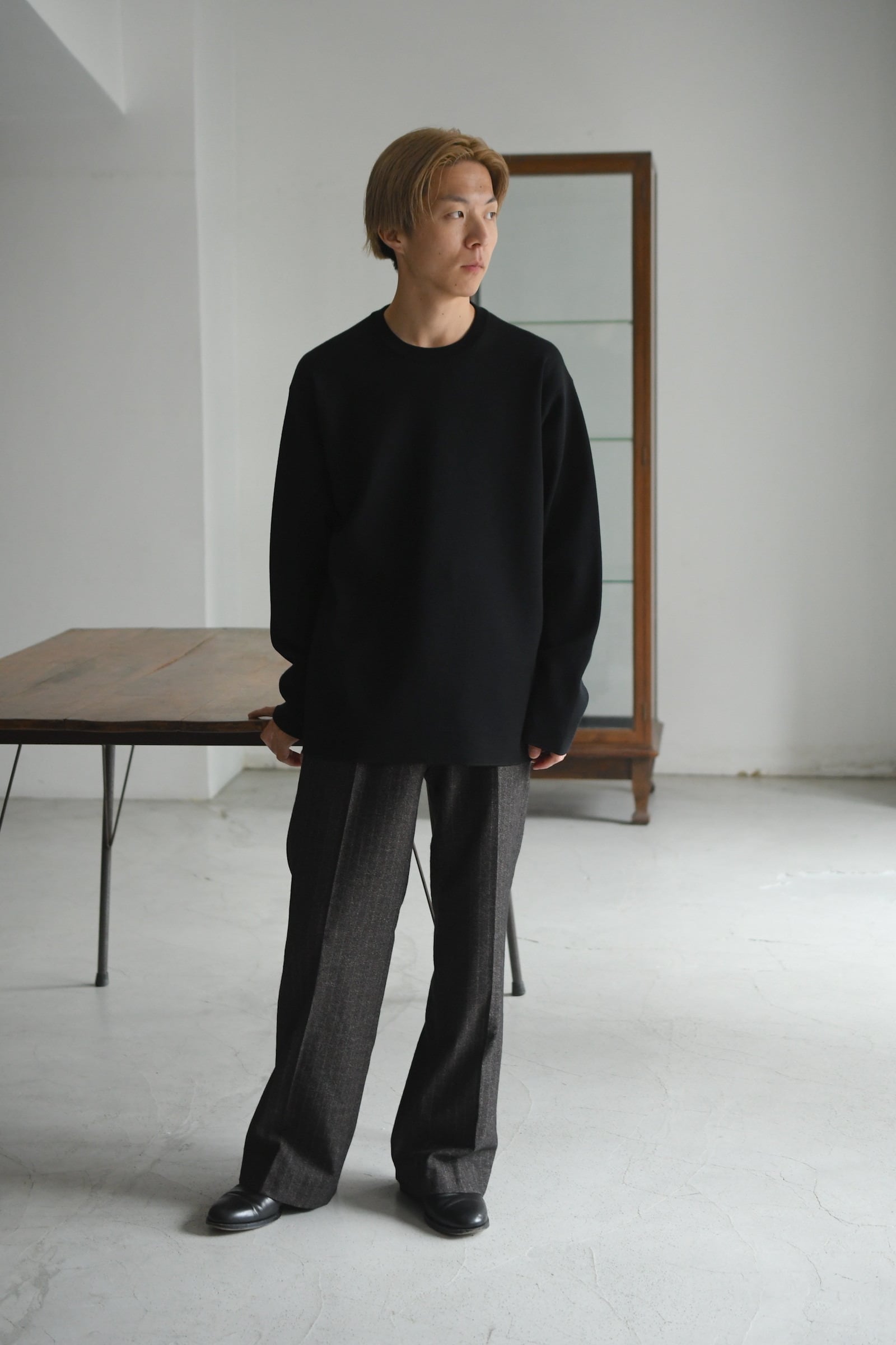 BATONER / 32G SMOOTH WOOL CREW NECK (Black)