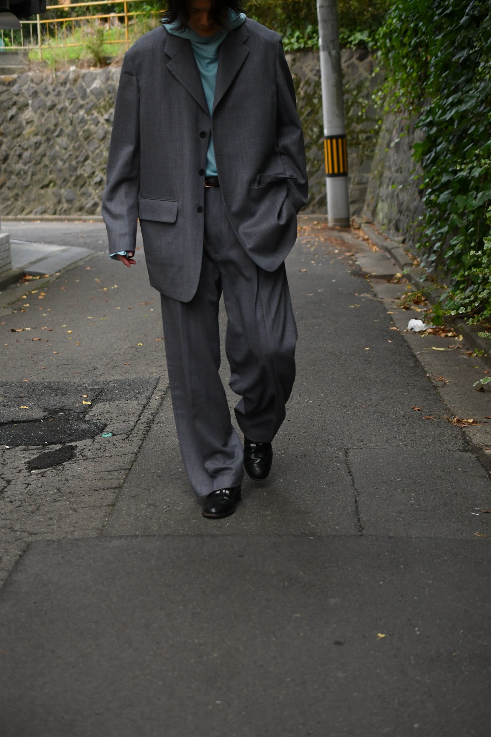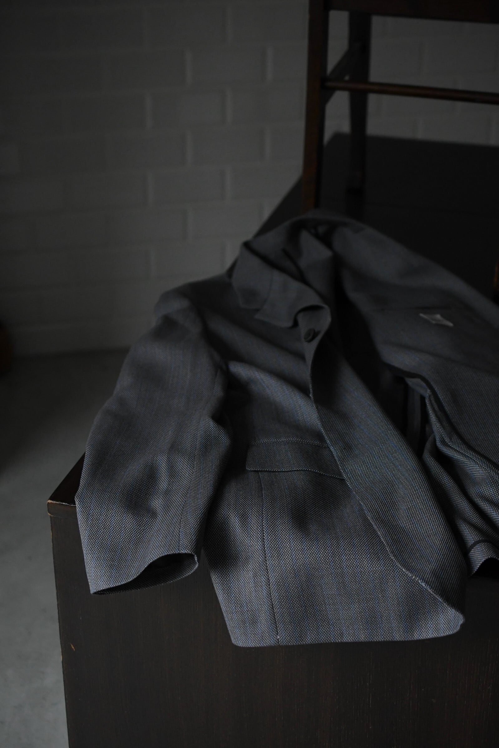 この縫製の背景を踏まえてもクラシックな要素が詰まっている事は確かだが、肩の落ち度や少し縦に強い設計により不思議と古き良き時代のモードな空気感も感じられ、全体感のバランスは非常に秀逸である。