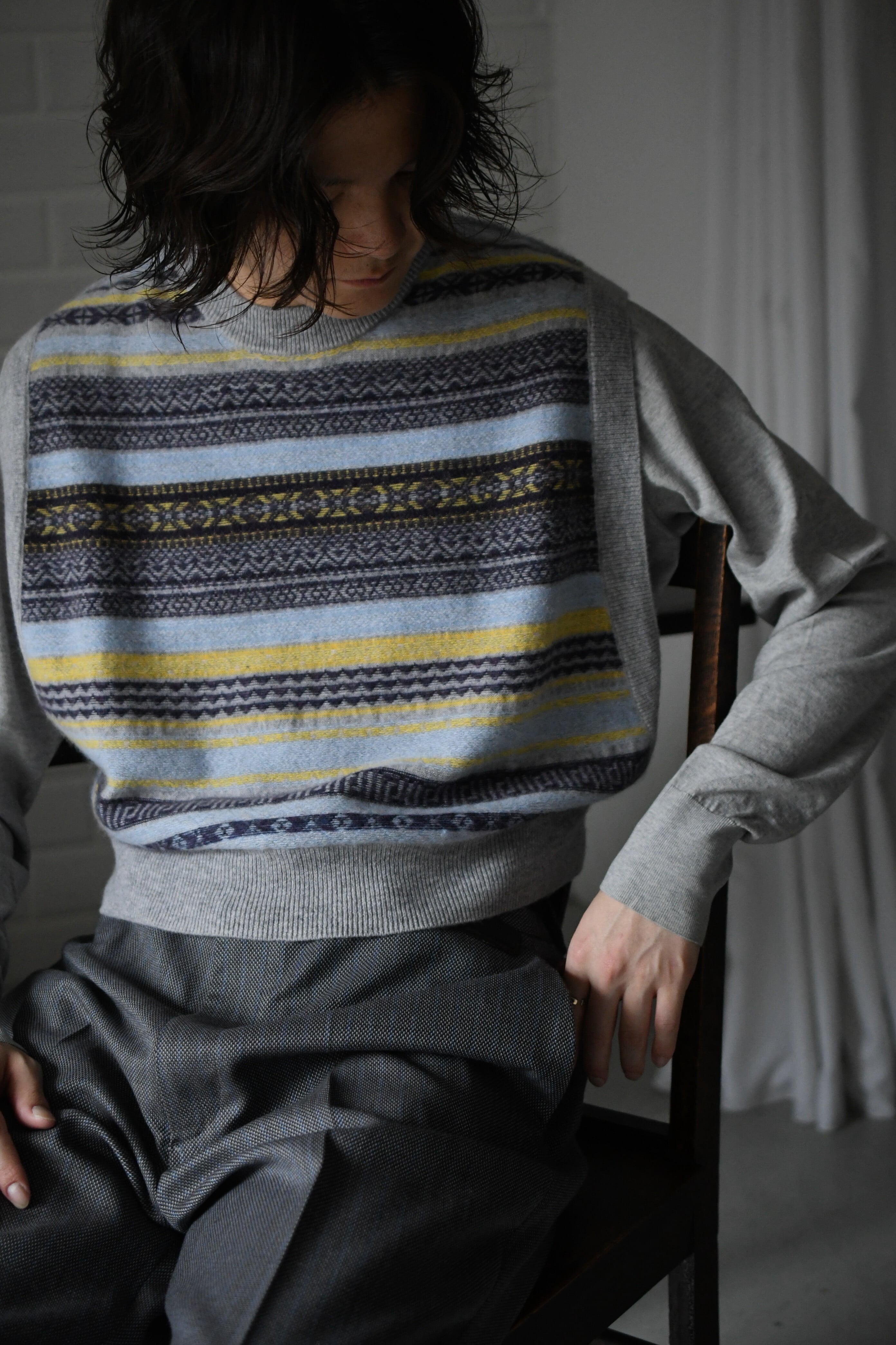 BISOWN / CASHMERE FAIRISLE SHORTVEST (GRAY MIX)