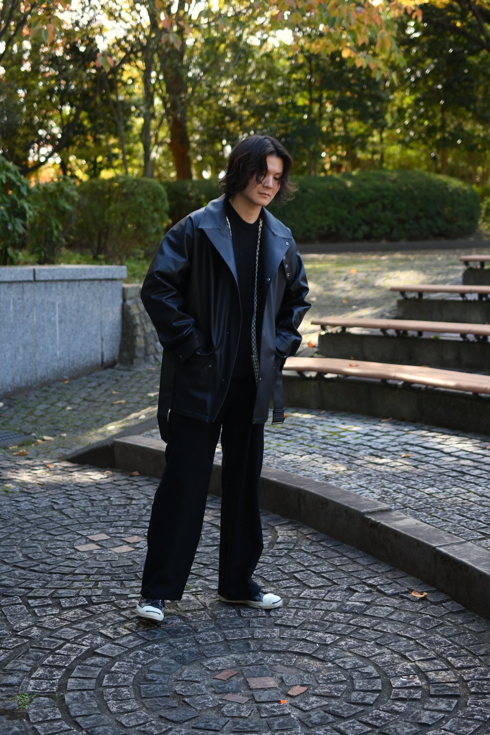 ヴィンテージでも存在するコーティングジャケットをHEUGNらしくモダナイズした”Dan”は、無骨さを程よく残しつつも、ドレスウエアに組み合わせても何ら違和感が無いバランスで仕立て上げられた圧巻の雰囲気が魅力である。