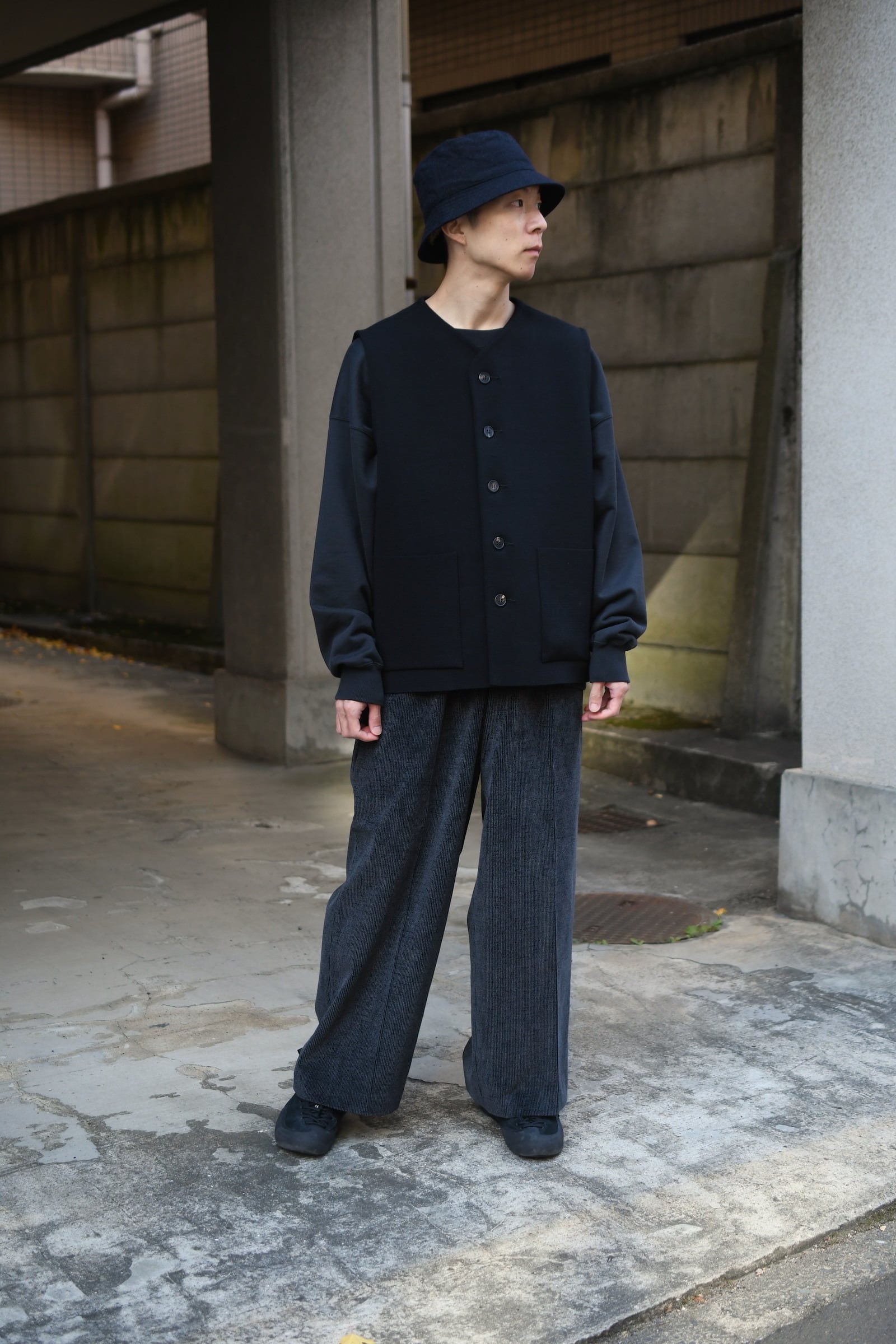 その良さをニットベストに落とし込んで製作した今作は、絶妙な肩位置とカマ底の深さによって「外」と「内」それぞれで使い勝手の良さを発揮し、物足りない何かを埋めてくれる。