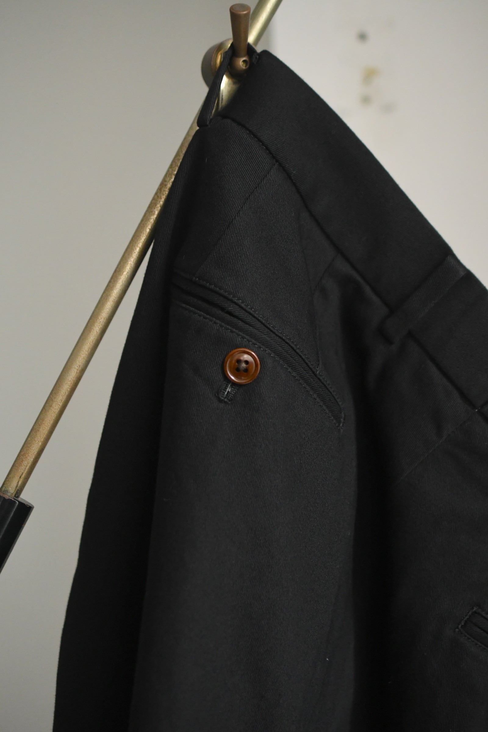 高密度に打ち込んだ綾目の立つ綿生地に洗いを施し、柔らかな質感と風合いを帯びているBLACK。