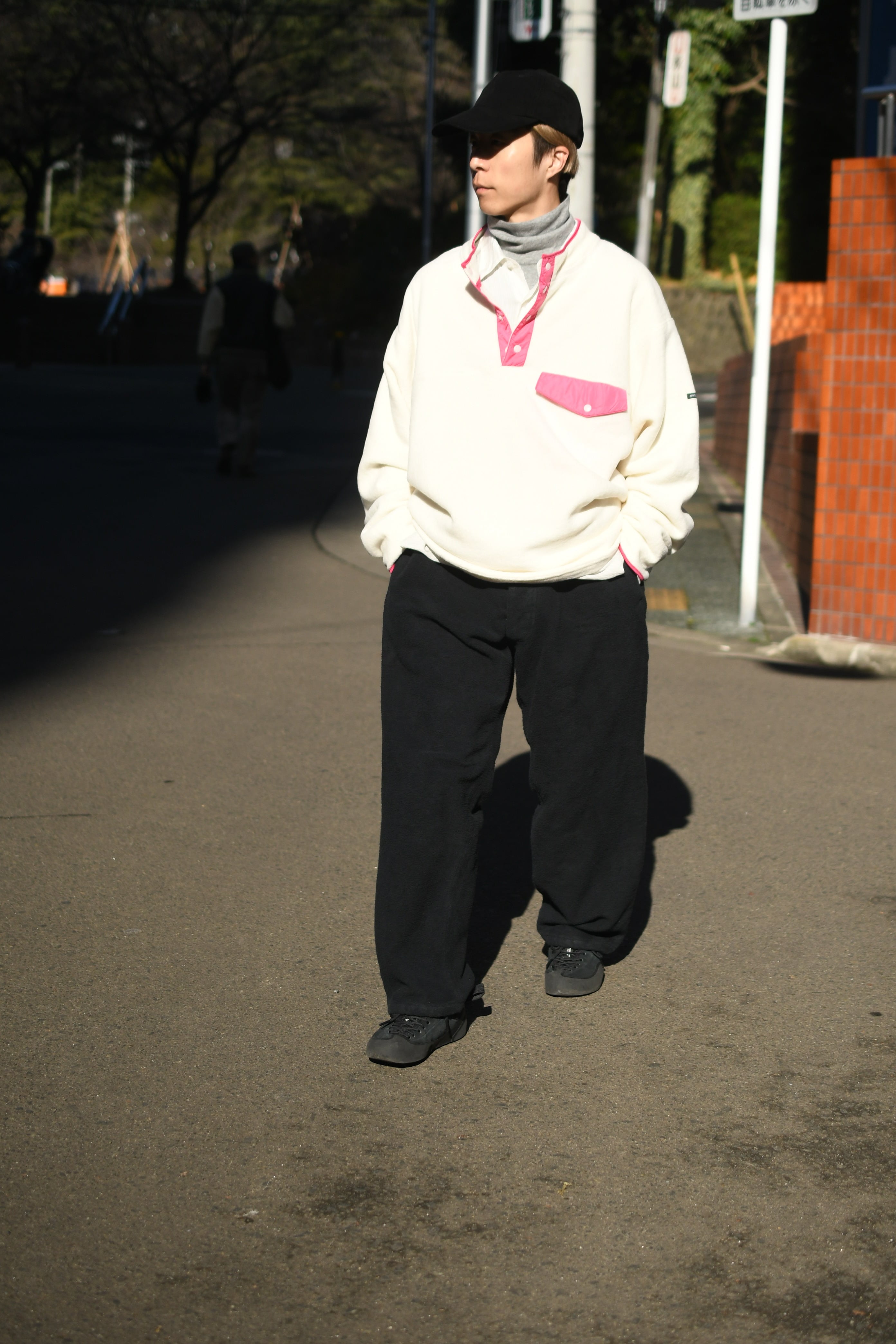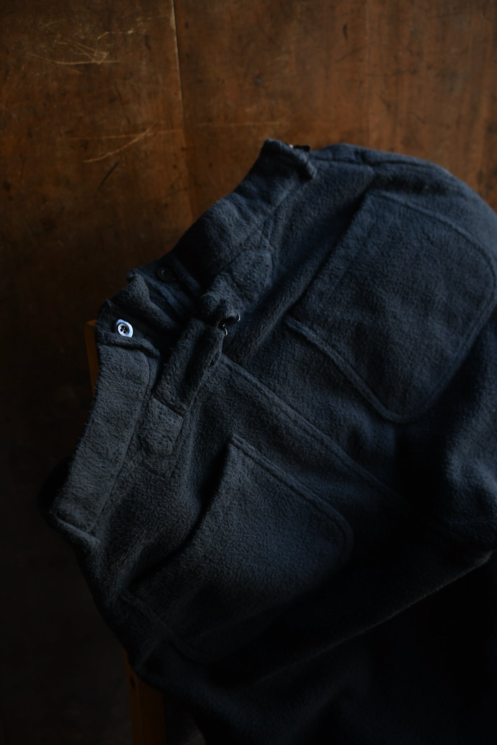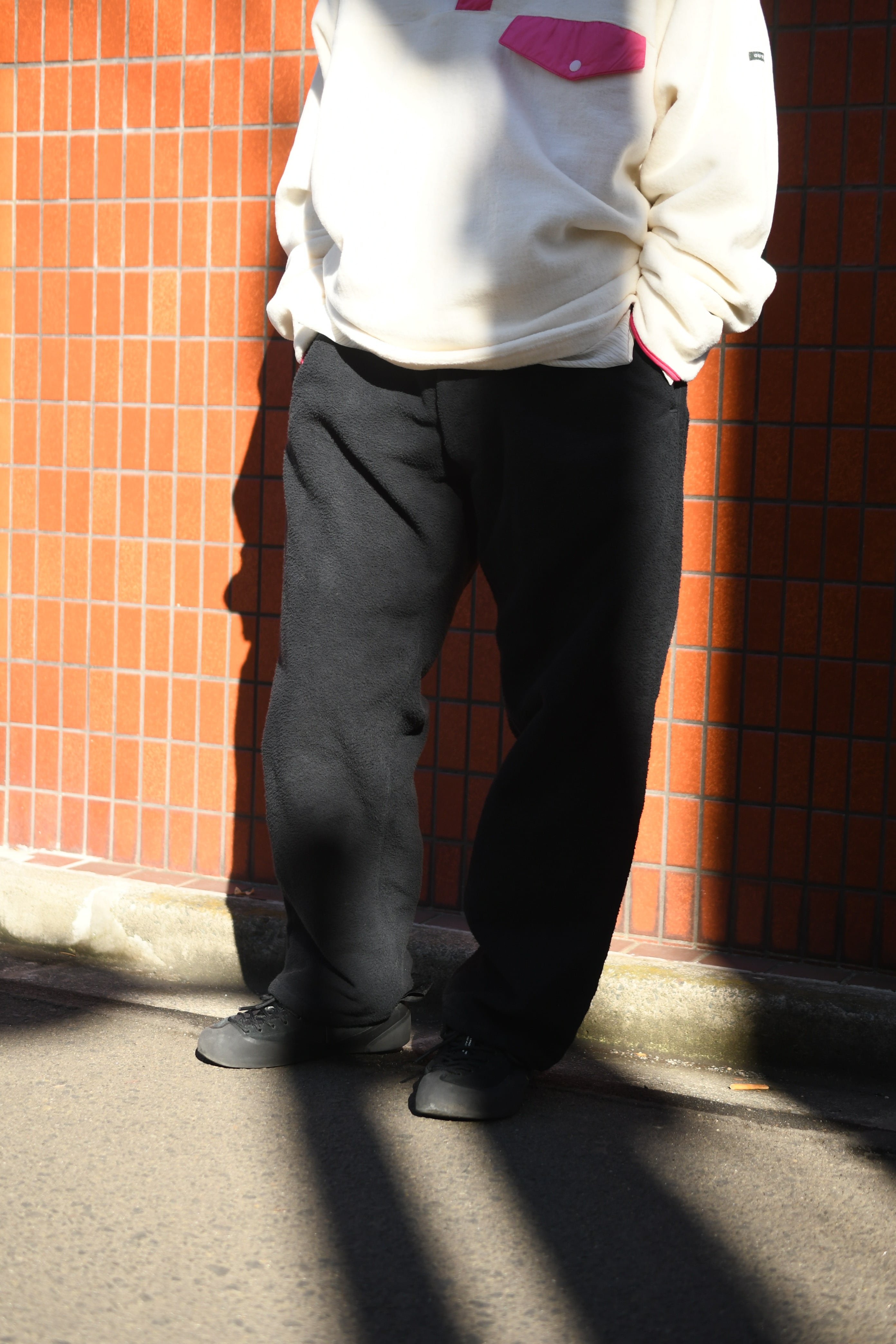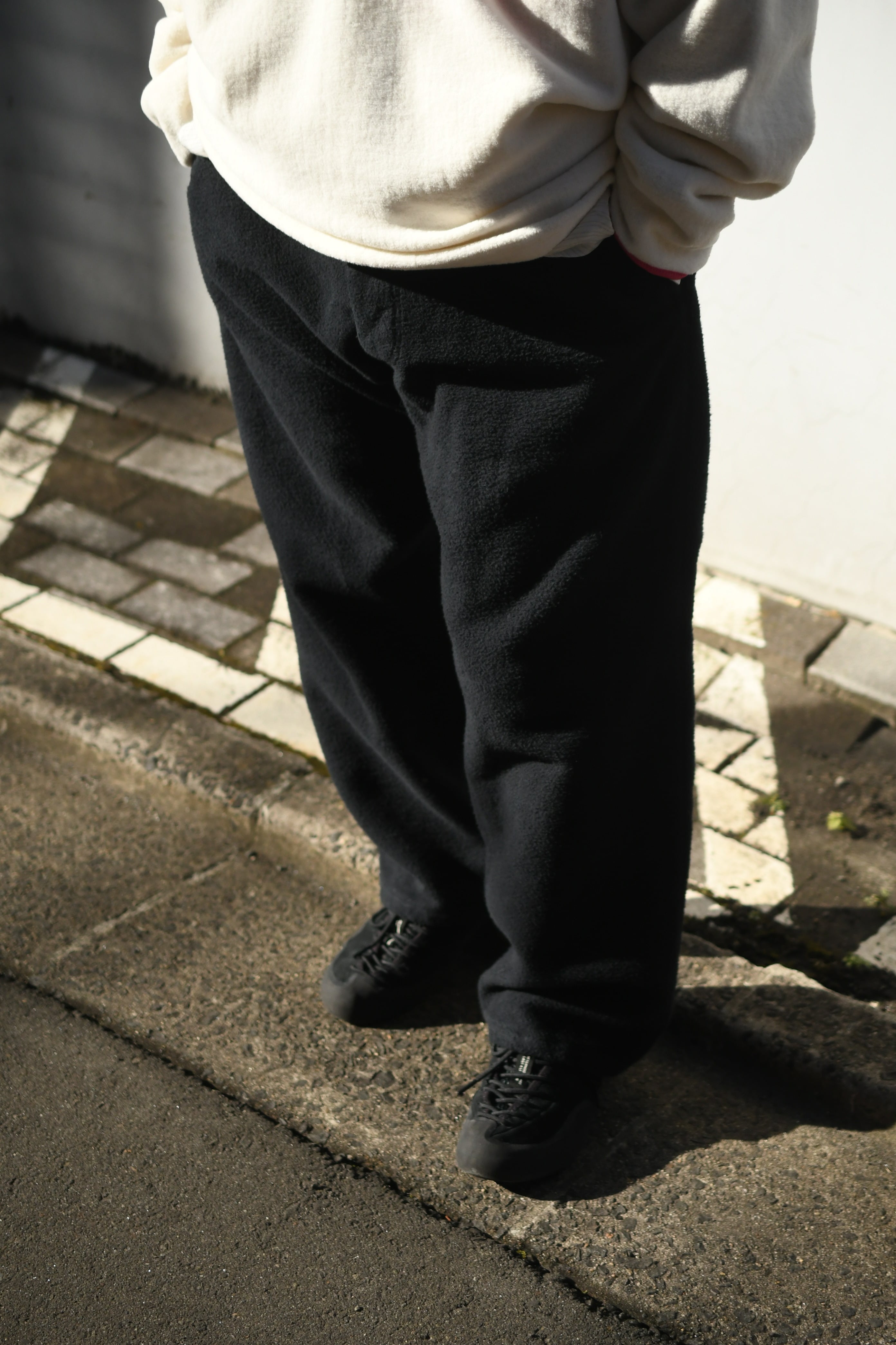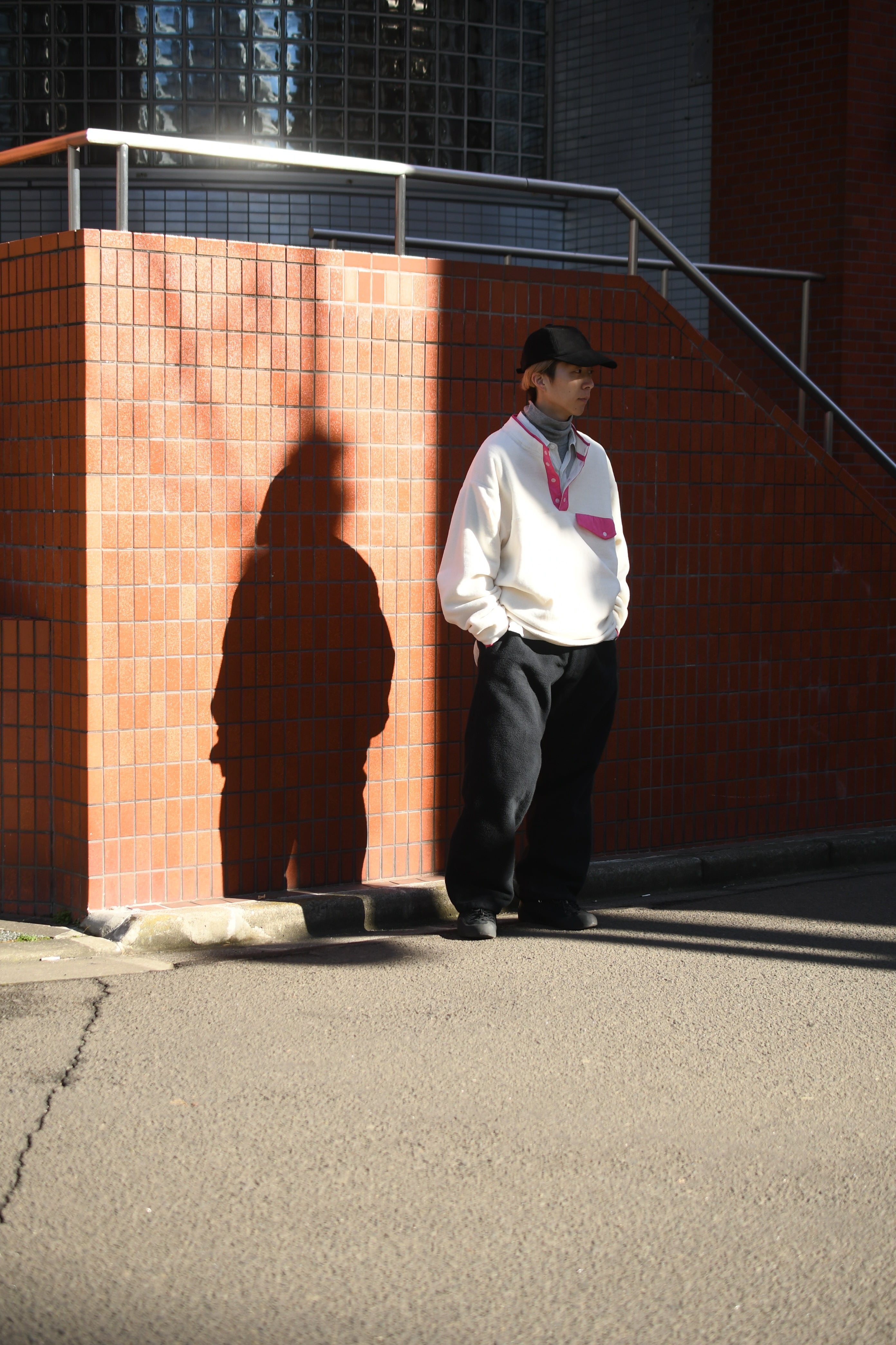 少しずつ先の季節へ目を向けたいのだが、伴わない冷たい気温がそこから目を背けさせる。そうした中でOUTILが新たに製作した生地は、季節感を繋げる素材感といい意味で「重さ」のある印象感が上記の悩みを解決させてくれるように思えた。40年代フランス海軍の作業用トラウザーをベースにデザインした PANTALON BOGYはストンと落ちるワイドストレート型。そこに落とし込んだ素材は、膨らみと暖かさを追求したコットン100による二重織りの両面起毛。風を通さない厚みと包み込む柔らかさ、そして言わずもがな、穿き込む事で徐々に褪せていく風合いの良さが際立つ魅力的な1本である。