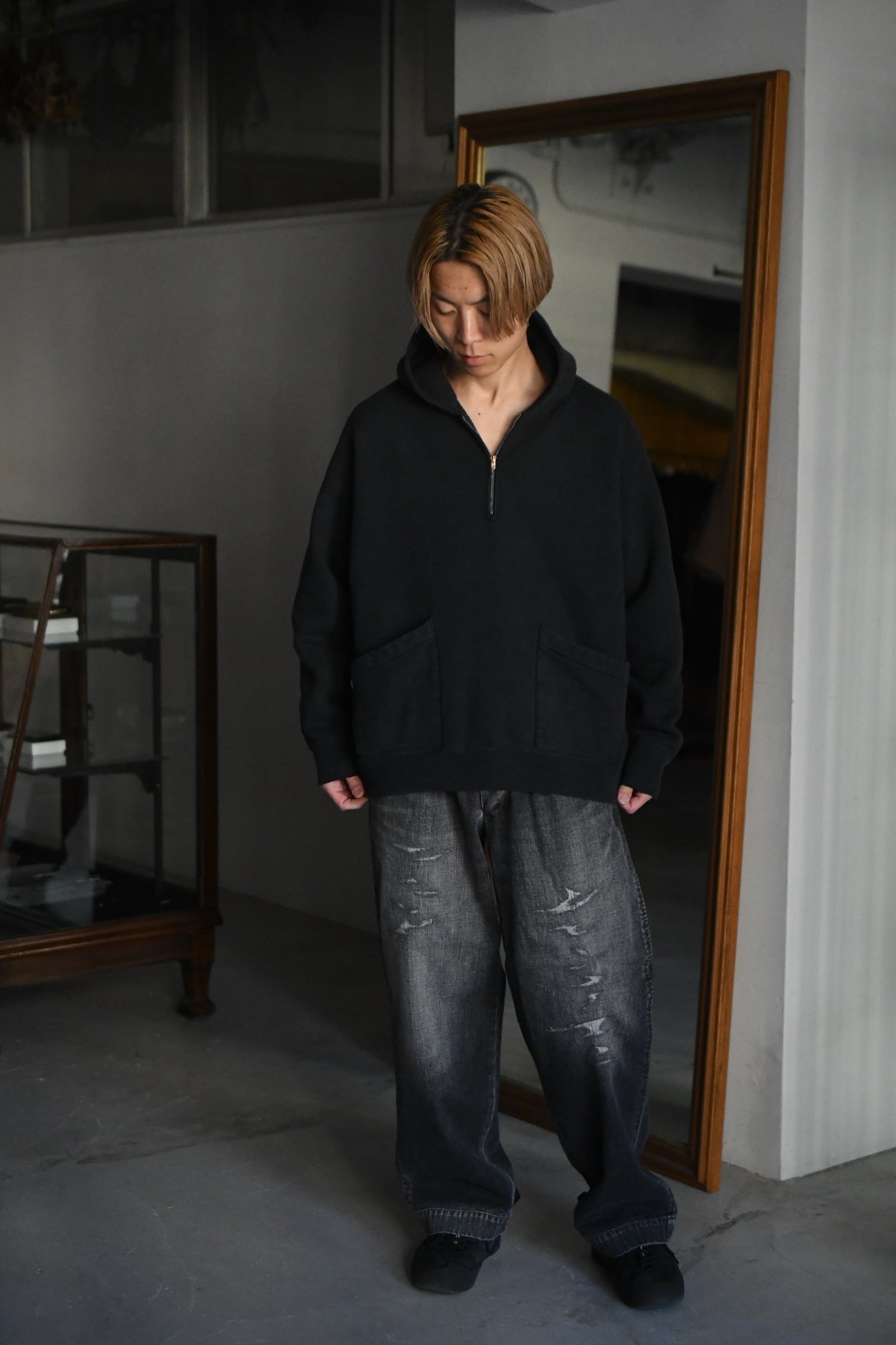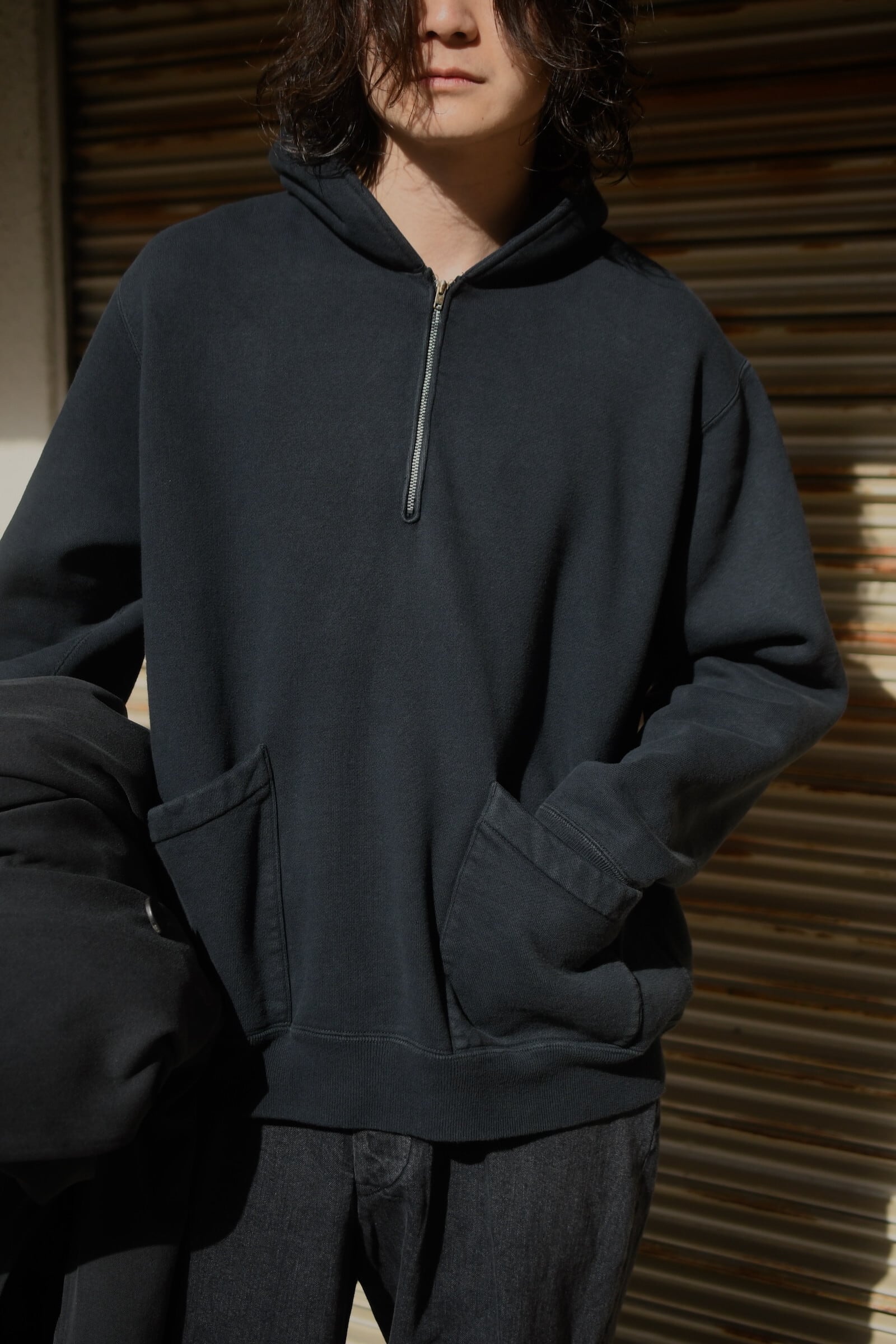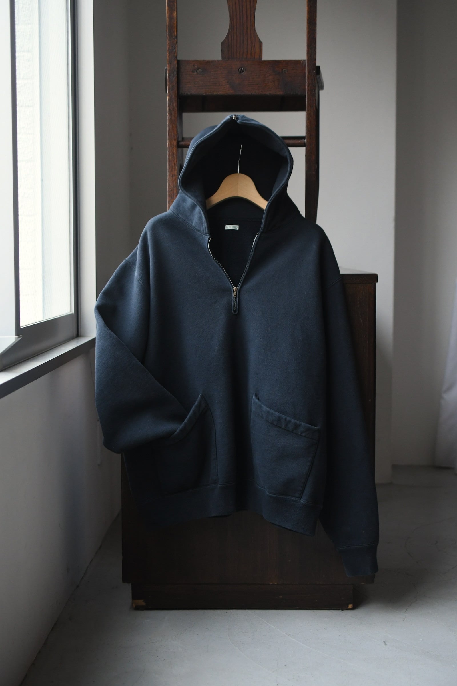 A.PRESSE / Vintage Sailor Hood Half Zip Sweatshirt (Black)