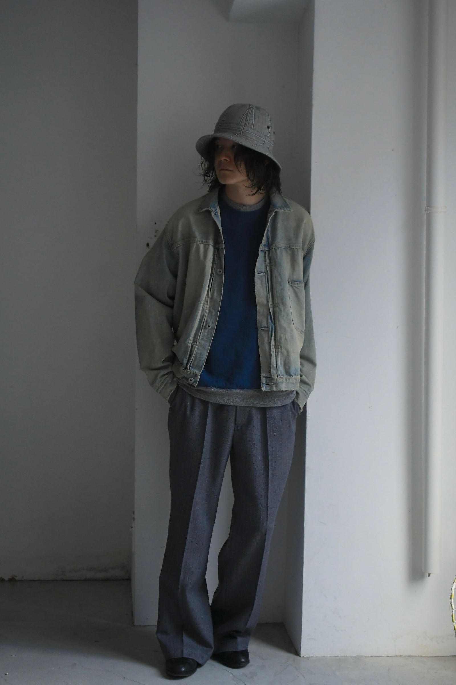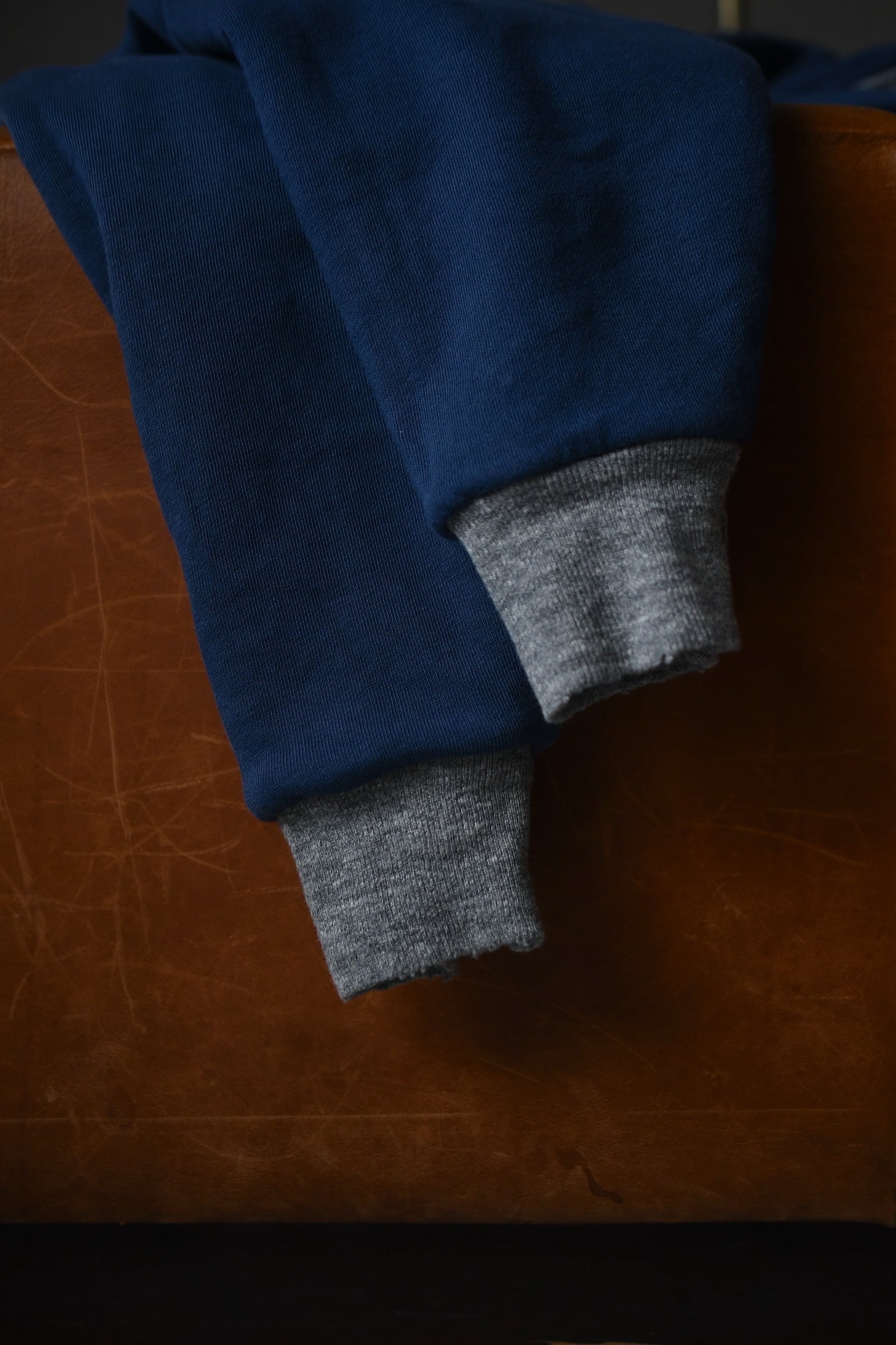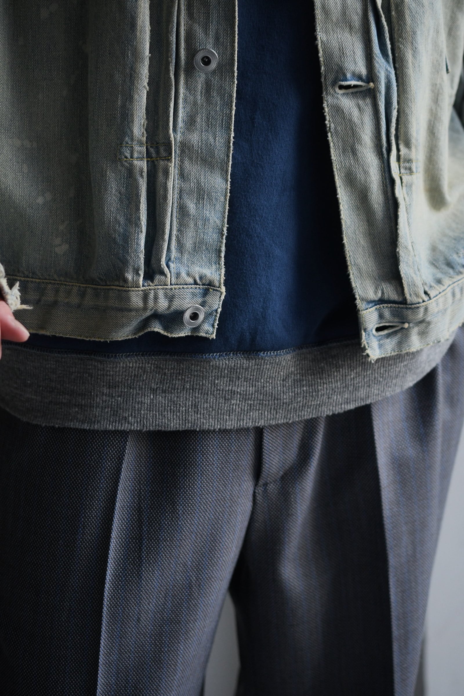 70'sのヴィンテージを再現して製作したリバーシブル仕様のスウェットは、褪せた異なる印象感が多様なスタイリングの”外し”を担ってくれる。過度に美化させ過ぎるのではなく、ヴィンテージの薄く伸びきって緩くなったリブをあえて再現し、崩れたシルエットに設計。あの風合いに極限まで近づけるため、ビンテージを徹底的に解析し、裏起毛が経年変化で滑落し毛が抜けて薄手になった絶妙な肉感までも忠実に再現している。同属性だが真逆の色合いである故に、着こなしを試せば試すだけ間違いなく所有して良かったと満足する筈である。