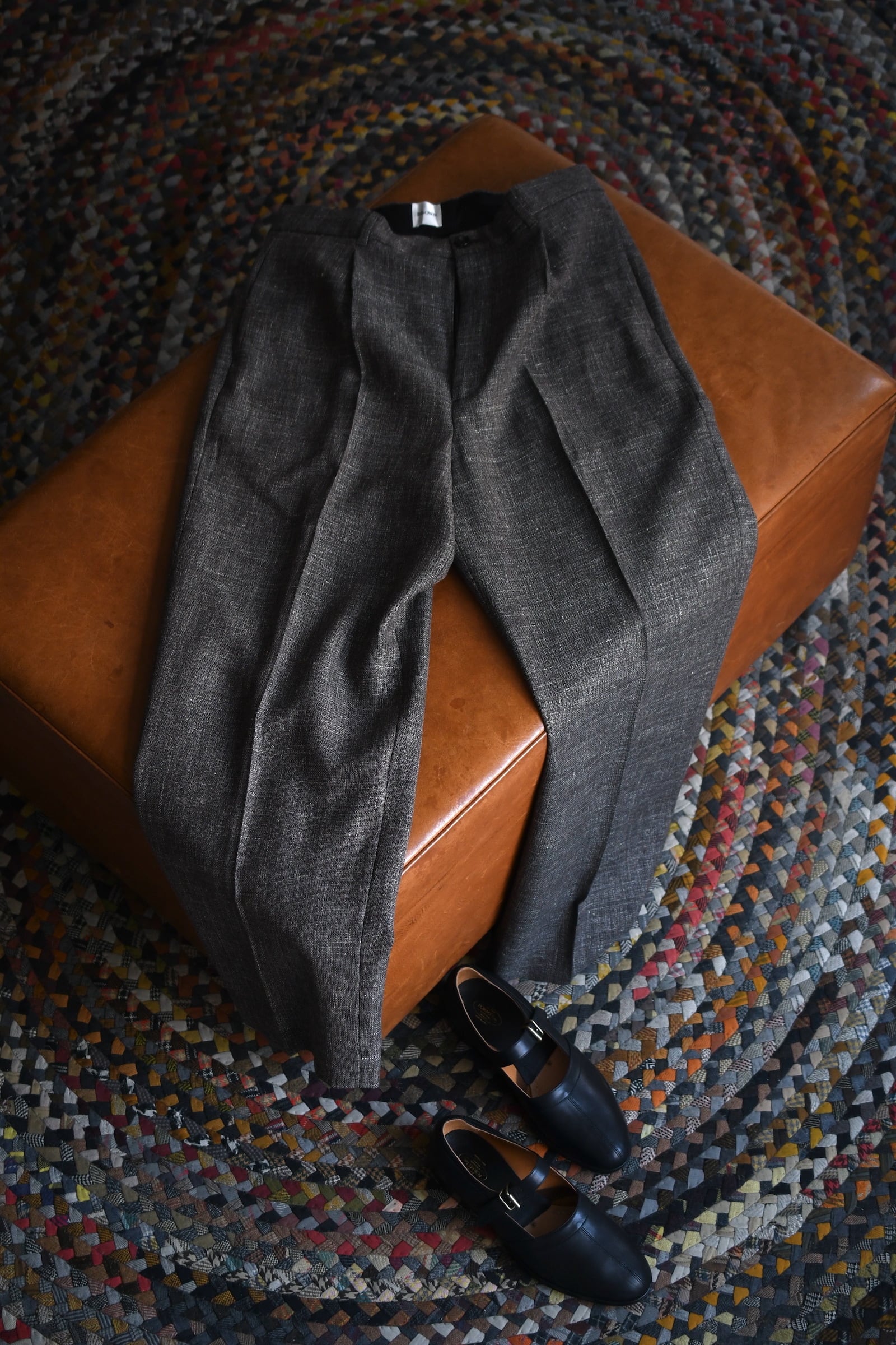 BISOWN / WOOL LINEN 1TUCK TROUSERS (MIX BLACK)