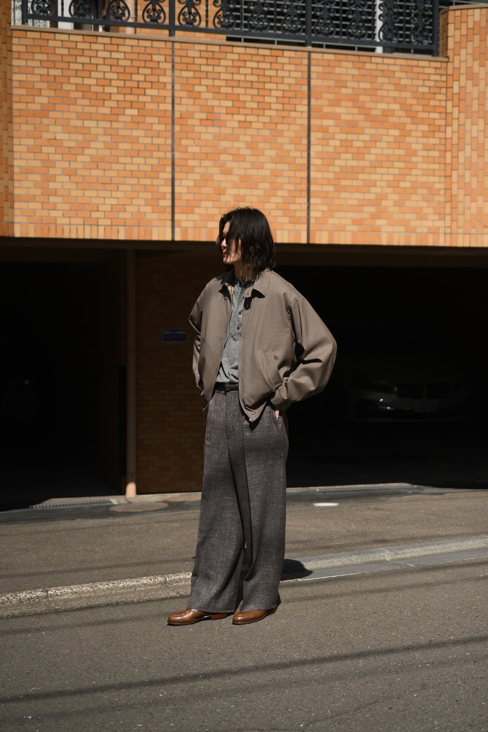 KAPTAIN SUNSHINE / Summer Wool Zip Blouson (Brown Plaid)