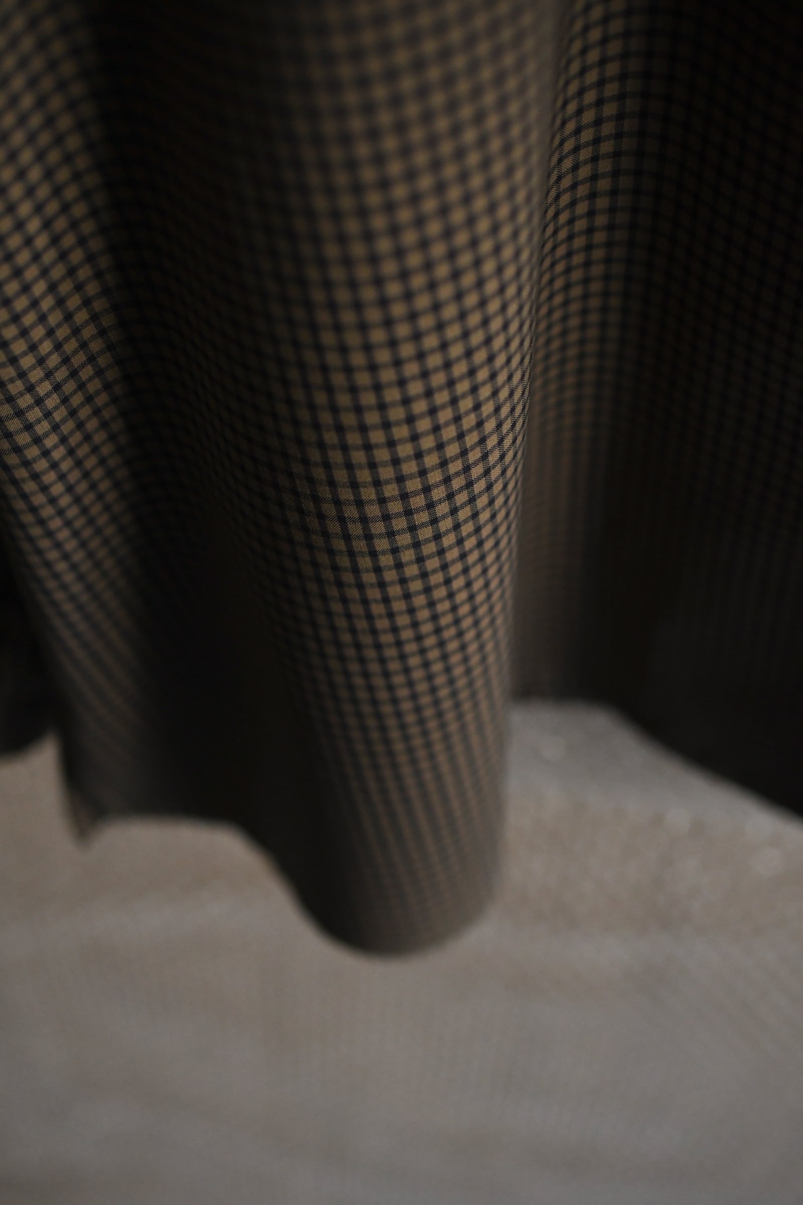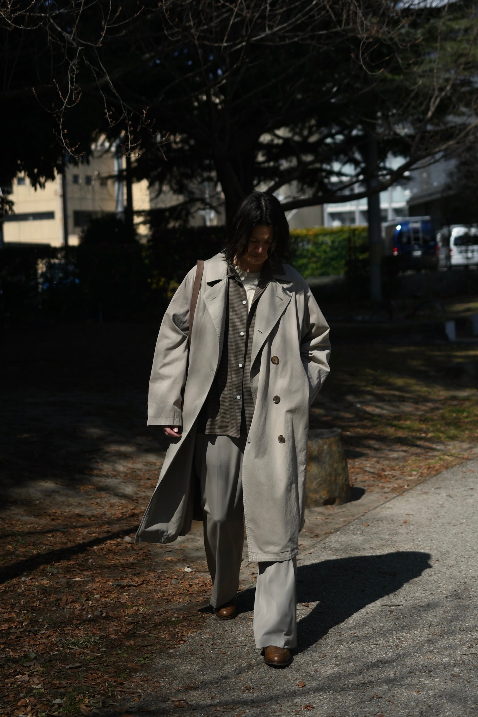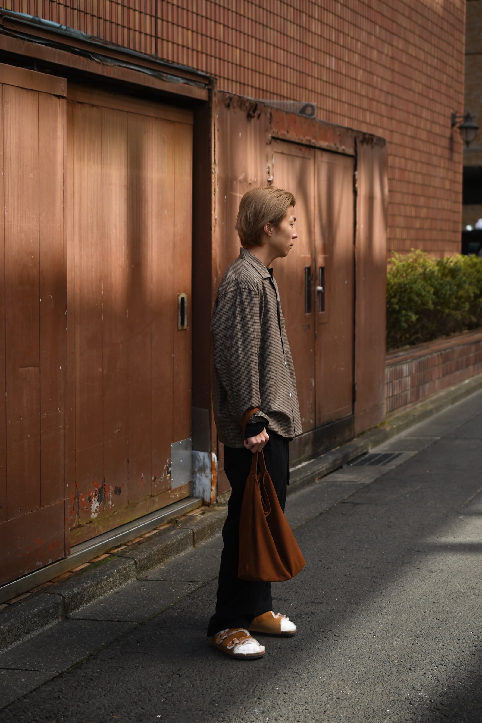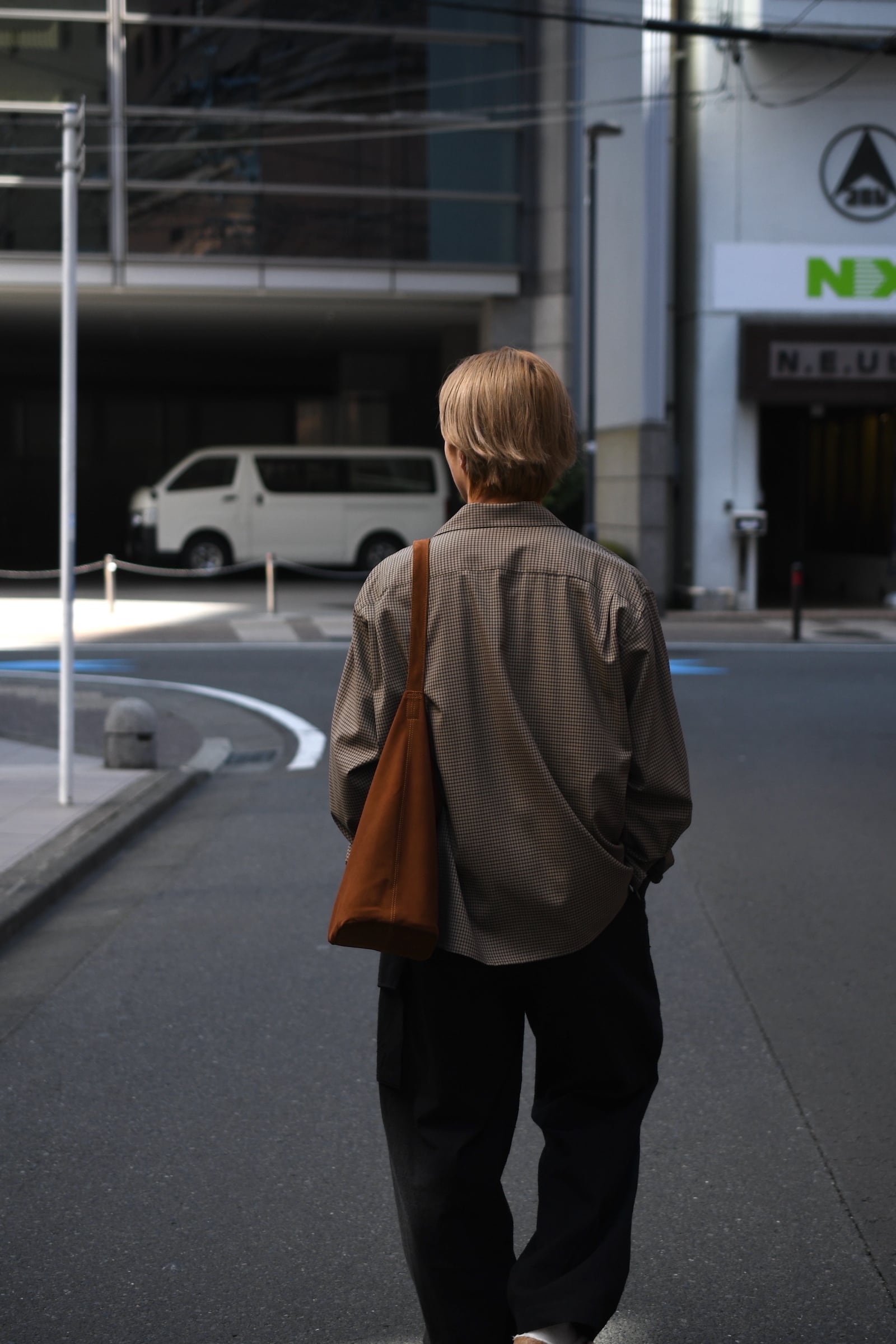 KAPTAIN SUSHINEが新たに手掛けた生地は、上質で滑らかな Super140’s 相当の極細ウールを用いて織り上げたサマーウール。サラッとした優しい質感、そして優れた防臭性や通気性、シワになりづらい耐久性をも備えており、春〜初秋までの長い期間で頼りになる嬉しいスペックを有している。更にウォッシャブル加工も施されており、高温多湿な日本の夏季に於いて強く求めたい ”気兼ねなく洗える”という魅力もそこにはしっかり秘められていた。その魅惑的な生地を用いて製作された開襟シャツは、揺れる軽やかなドレープと肌離れの良さを活かすように仕立てられたリラックス感あるバランスが素晴らしく、真夏でも快適に過ごす事が出来るだろう。そして、優しい色合いだが不思議と渋さを感じる好配色の細やかな格子柄は、春夏という爽快な季節にキリッとした落ち着きを与えるかのようにモダンな空気感を纏わせており、より大人な1着へ仕上げてくれている。
