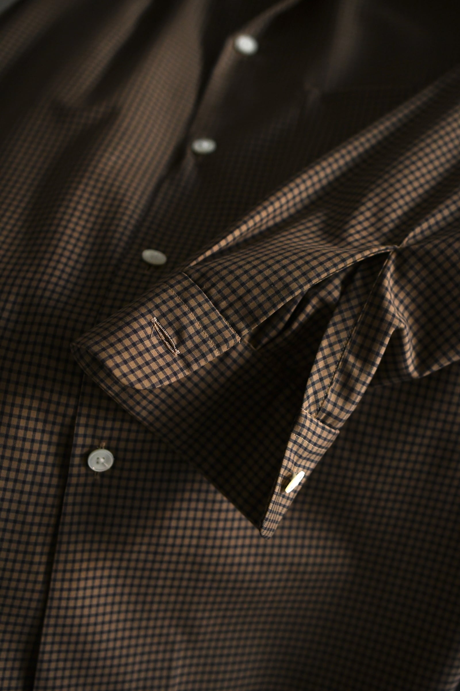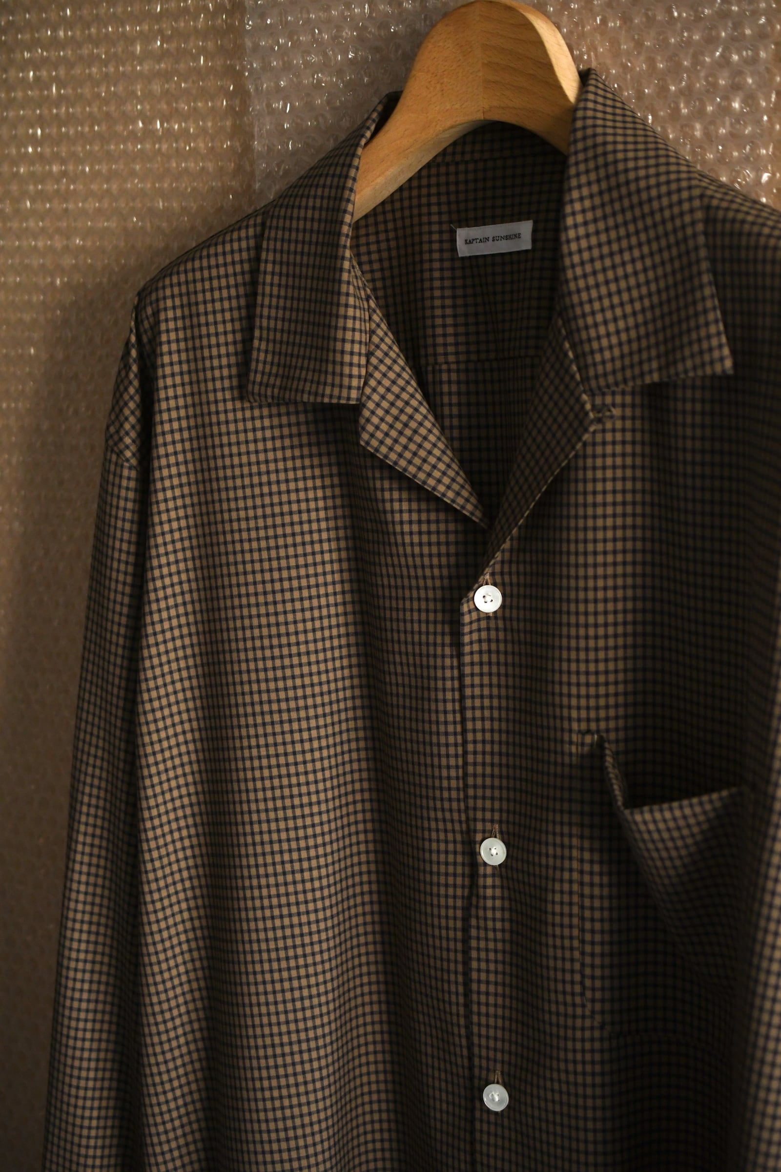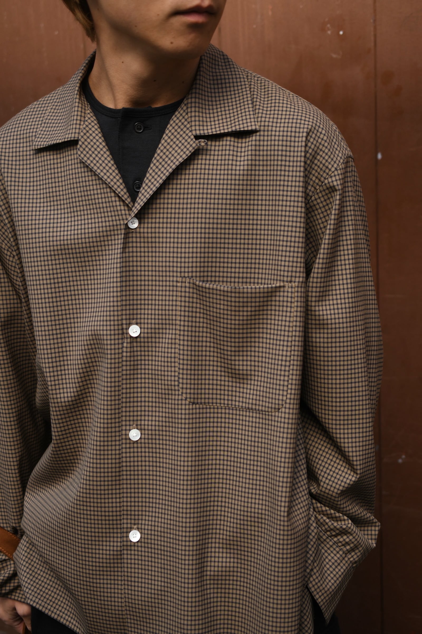 KAPTAIN SUNSHINE / Summer Wool Open Collar Shirt (Brown Plaid)