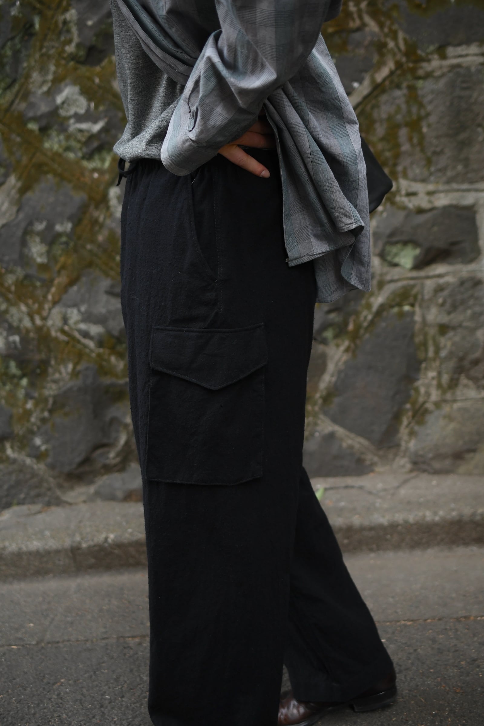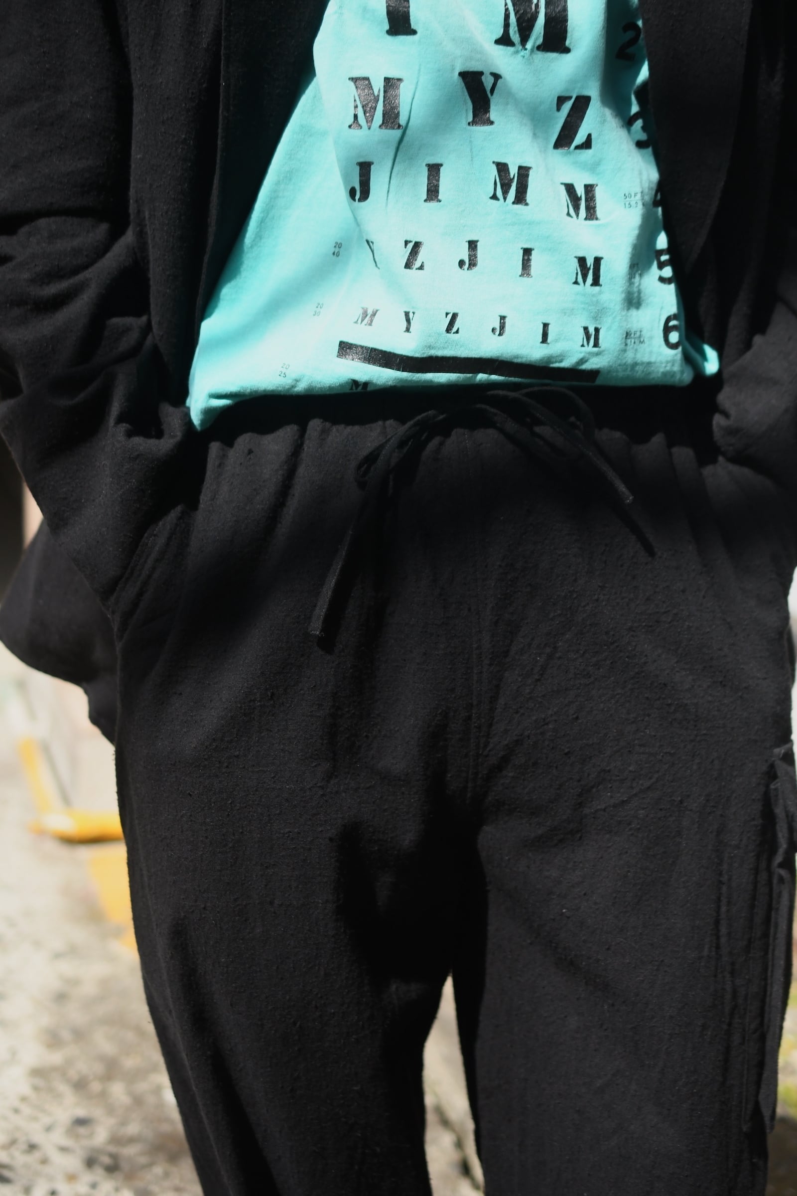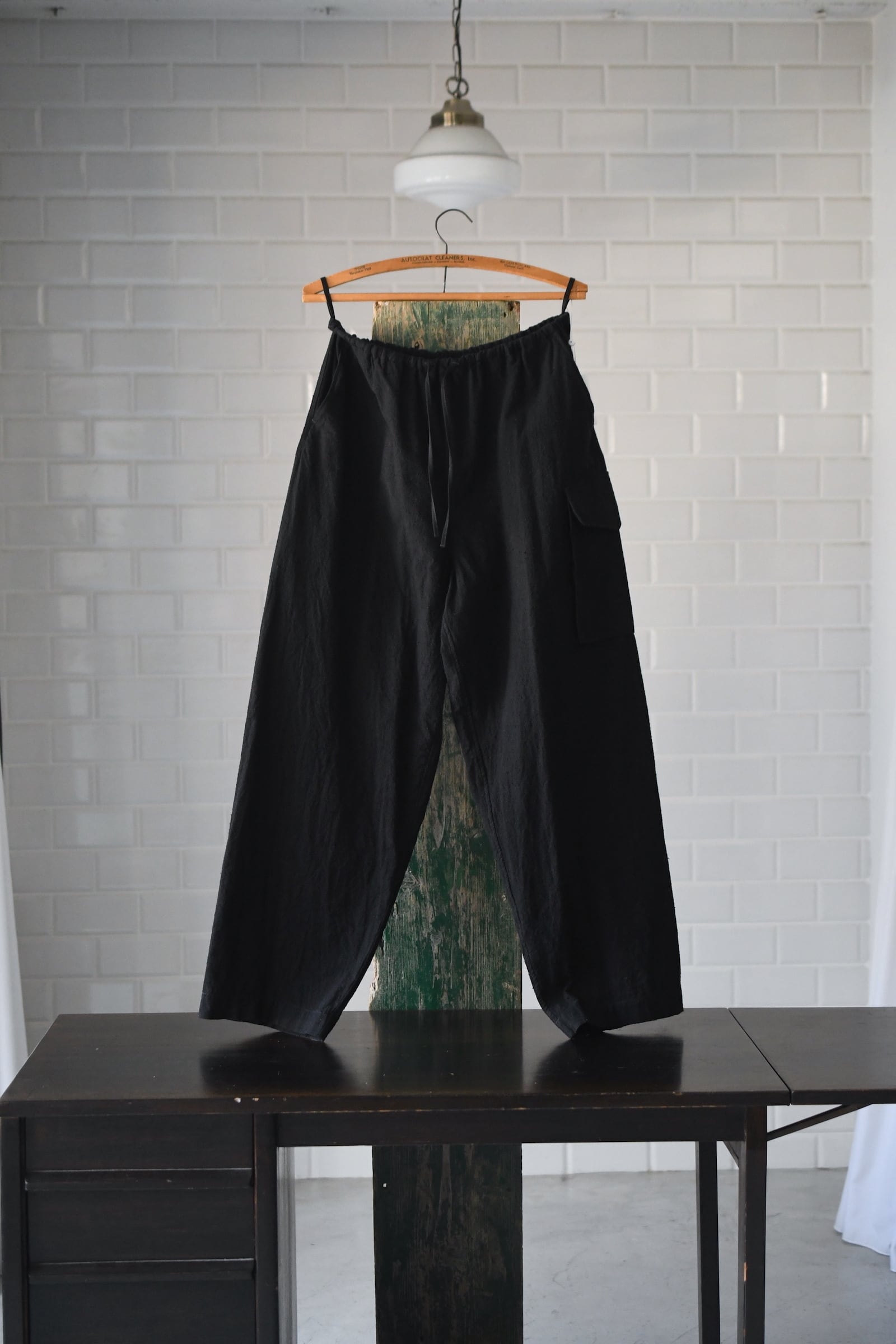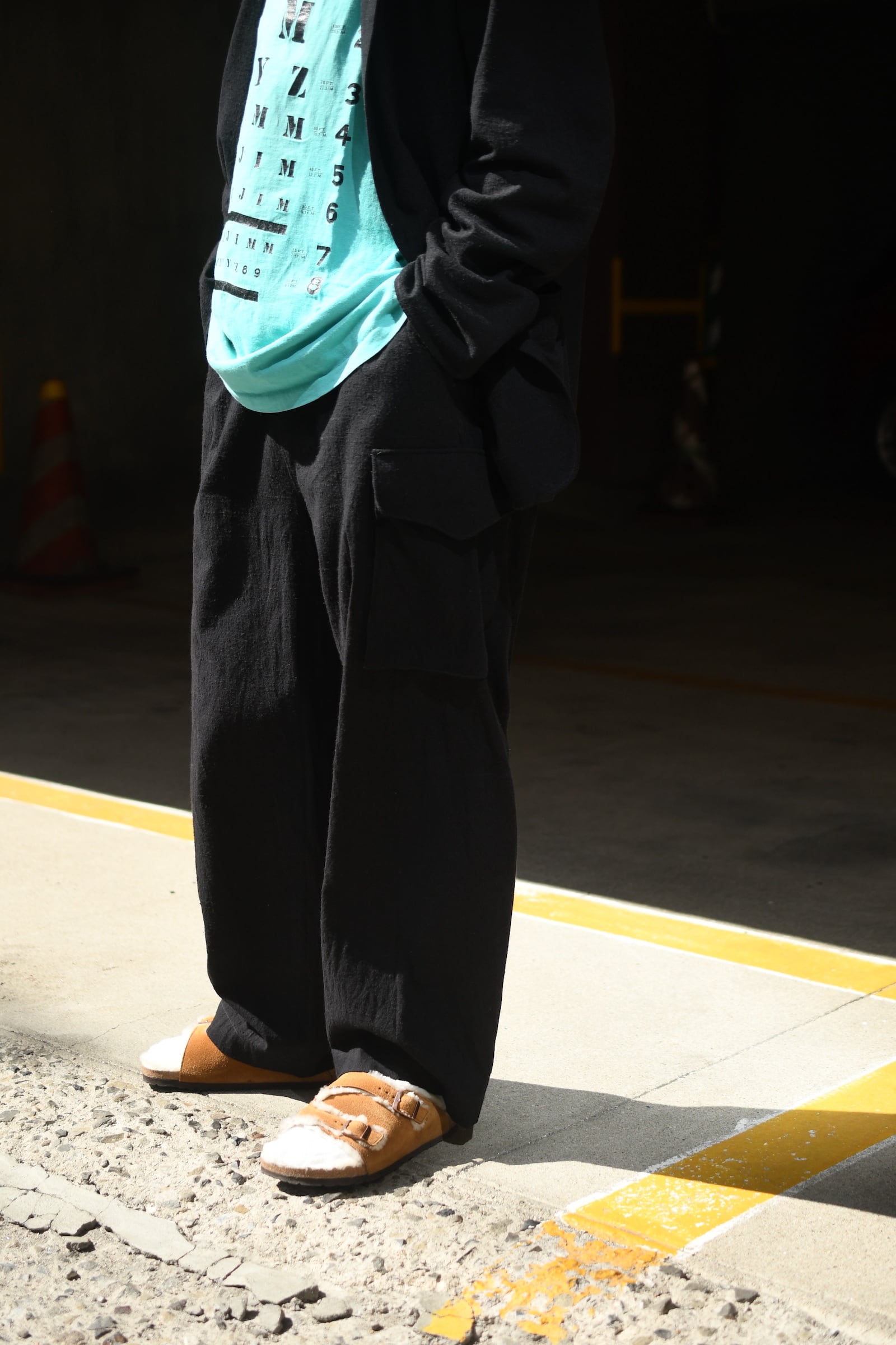 イージーに穿ける心地良さが土台にある上で、サイドに剥ぎのない仕様と巧みなパターンセンスで美しいシルエットを有する定番の4Pパンツは、今季より少し余白感が広がり、そして日本の夏季にも最適と言える贅沢な素材感を纏って新たに誕生した。染色、番手の異なるコットンシルクのムラ糸3種を織り交ぜた後にワッシャータンブラー加工を施した生地は、ネップを際立たせた立体感ある素朴な風合いと柔らかな着心地を誇り、軽量で通気性が良く、清涼的で肌離れも良い。時季で言えば春から梅雨、そして真夏においても重宝する優れた素材感と断言出来る。春はシャツ、ニットのお供から始まり、夏はリネンを筆頭とした爽快な素材達と合わせて是非堪能して頂きたい。