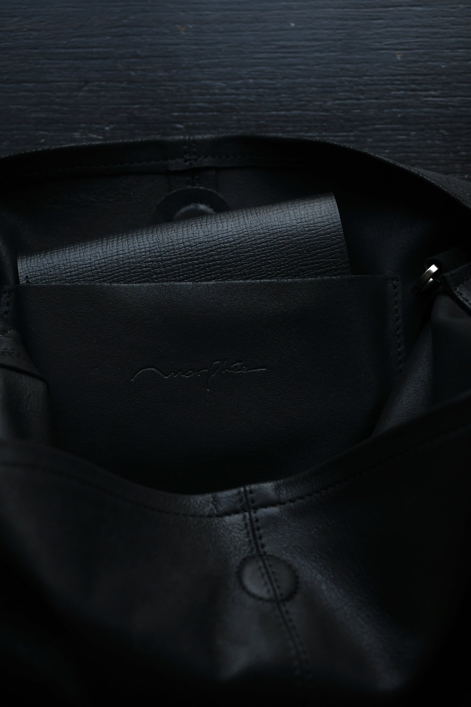 ”筒”を意味する”CYLINDER”は肩掛けに特化した鞄。ショルダーパーツは少し幅を持たせ、肩への収まりが非常に良い。また、肩に掛けたままモノが取り出しやすい形状が意識されている。TYPE2の今作はショルダーを延長したモデルで、肩掛けの他に斜め掛けも可能となった。