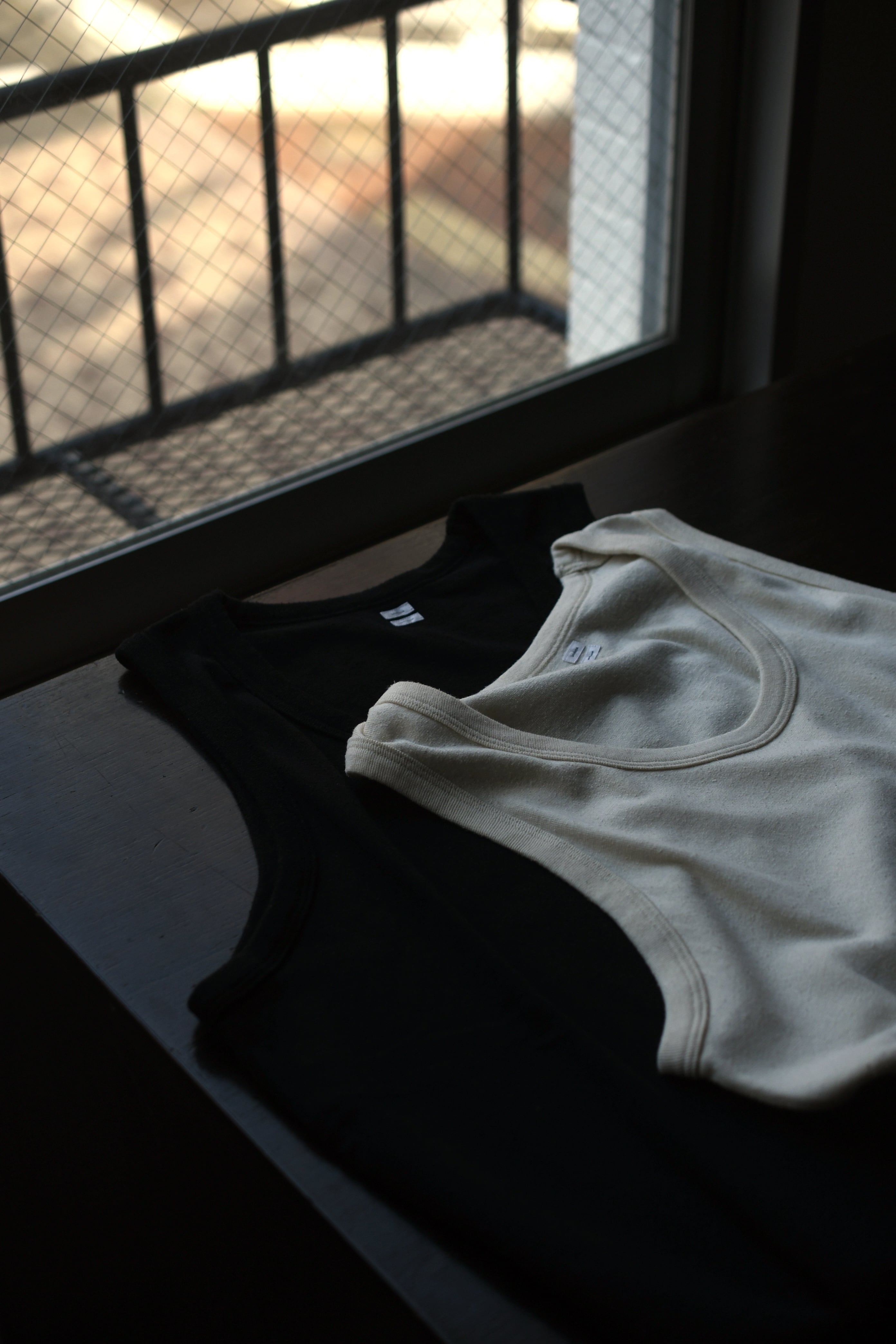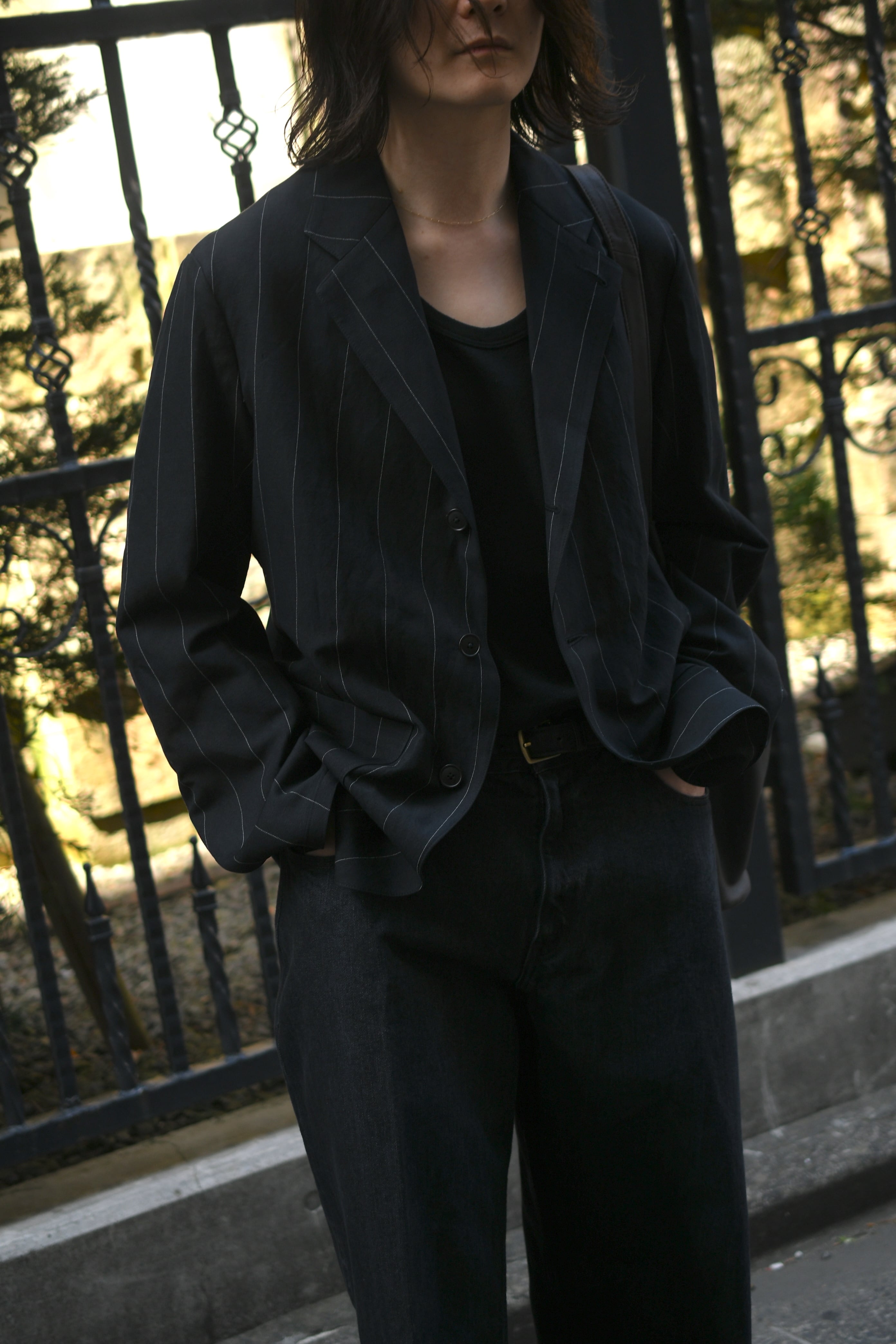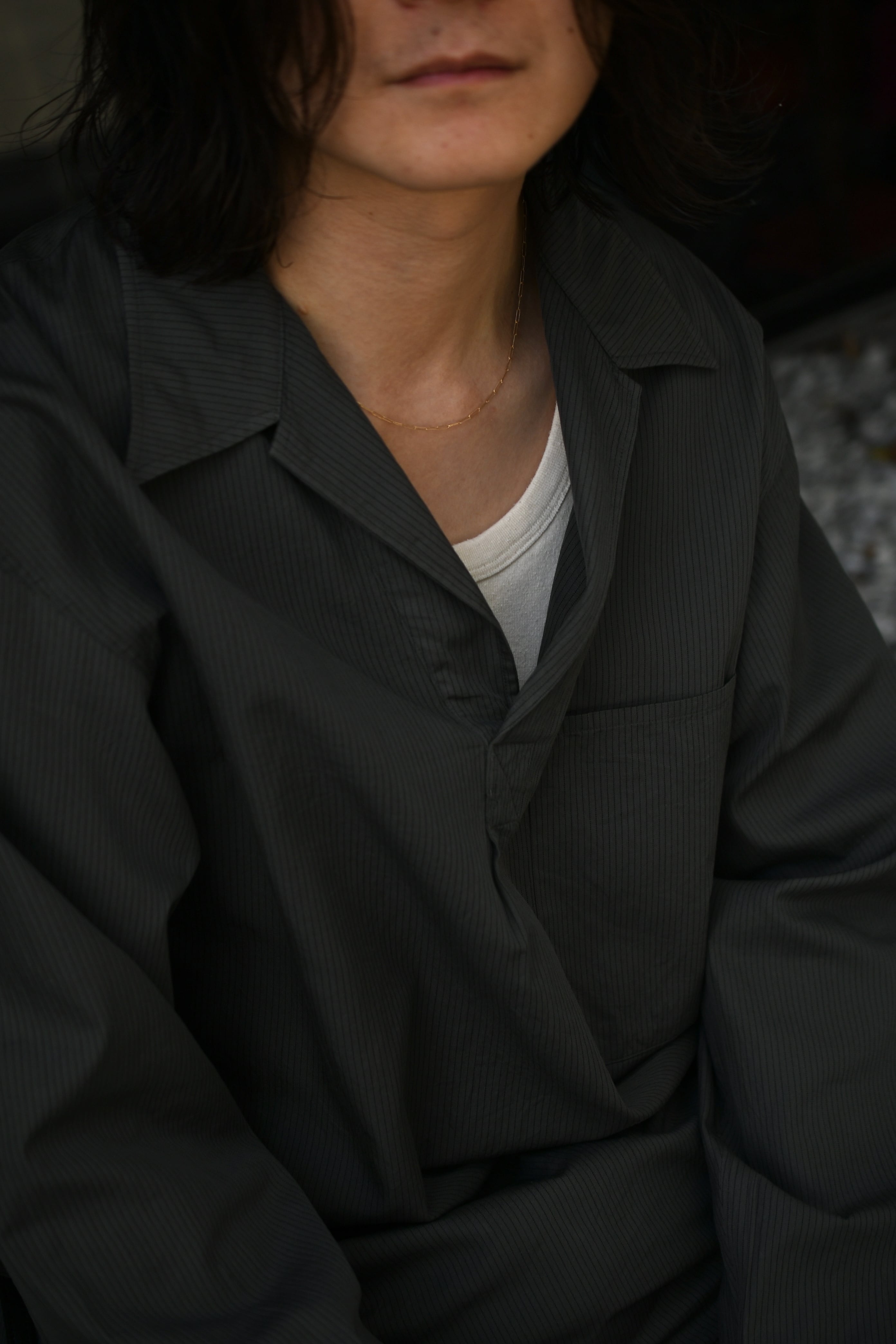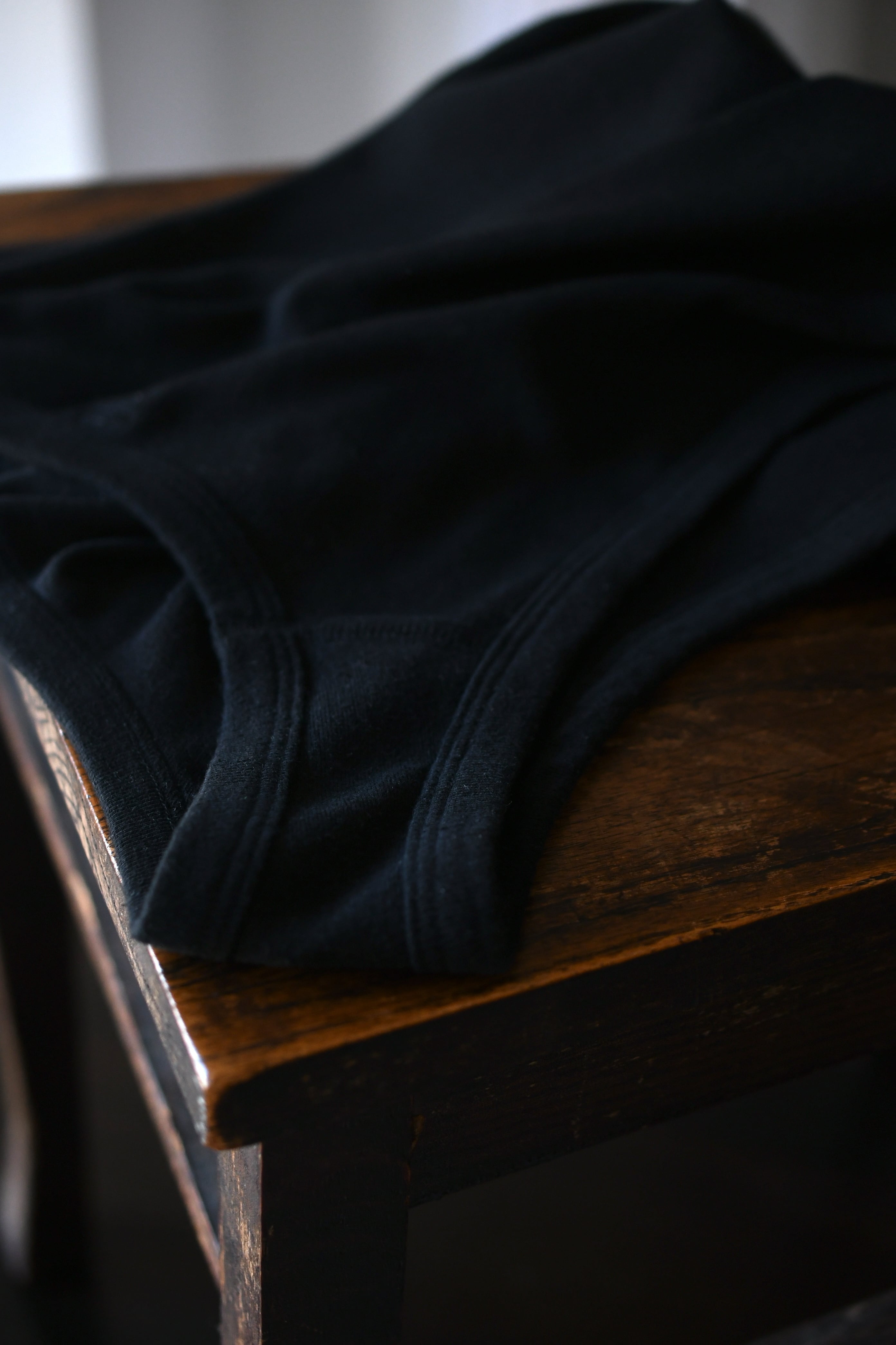 もしも、あの生地でインナーがあれば。そんな淡い期待が”求めている見え方”を体現してカタチとなった。ローシルクとコットンを上手く掛け合わせてデメリットを排除したblurhmsのコットンシルクネップを落とし込み、今季新たに誕生したリブタンクトップ。夏に想定し得るシャツやジャケットのスタイルで欠かせないインナーは、清涼感とケアの容易さ、そしてチープにならない印象感が重要に思えるのだが、この1枚はそれらの要素を十分にクリアしてくれていた。シャツの釦を2~3つ程度開けた時に覗く丁度良いネックの高さとラウンド感、そして透けないが厚くも無い肉感。後者に関しては羽織りに限らず、スウェットやニットのインナーにも好相性であり、シーズンレスで重宝する事になるだろう。