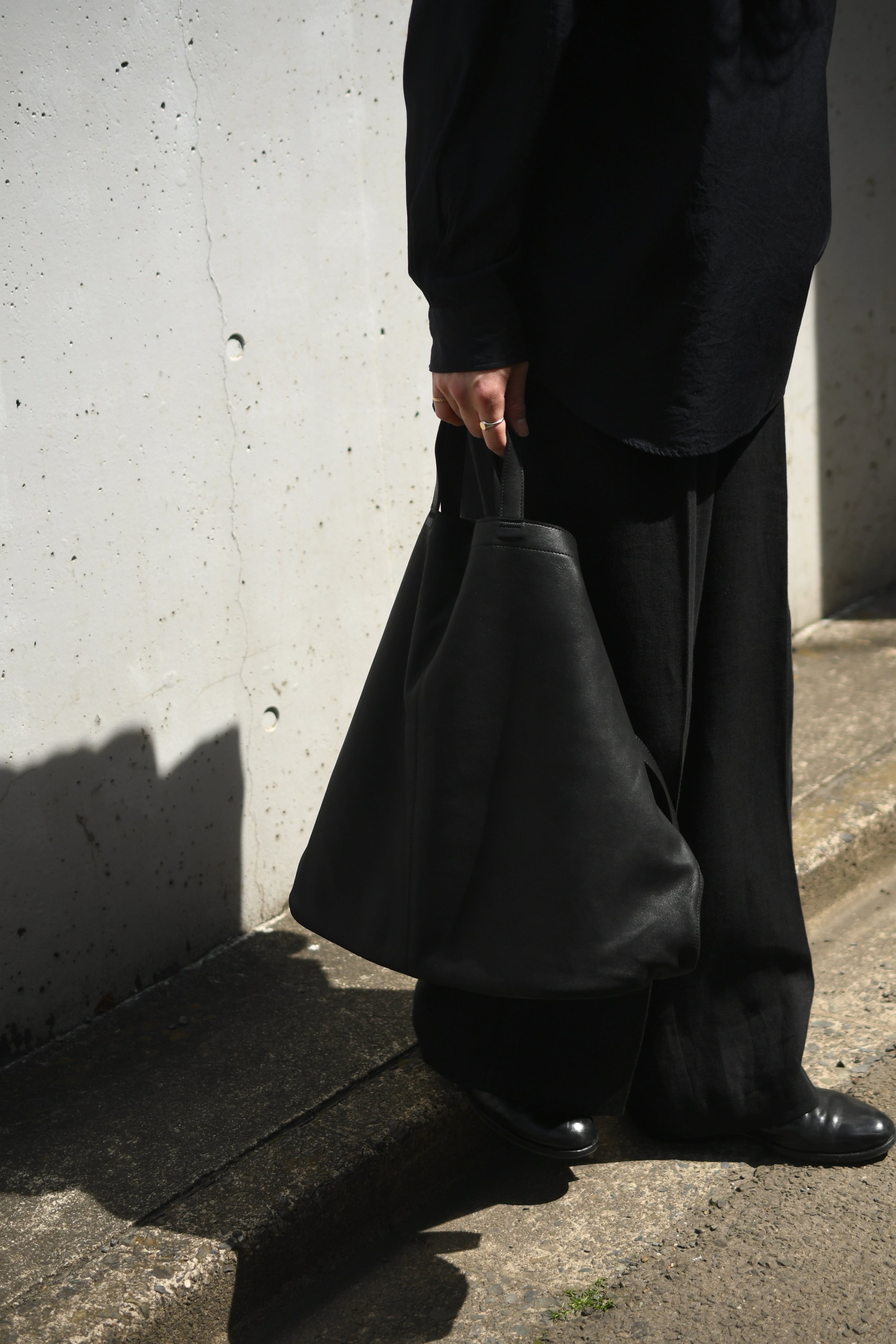 また、本来は裏側(床面)の部分を特殊加工を施し表面にし、表面(銀面)を裏にすることで裏地を設けずに一枚革で成立するバランスに。