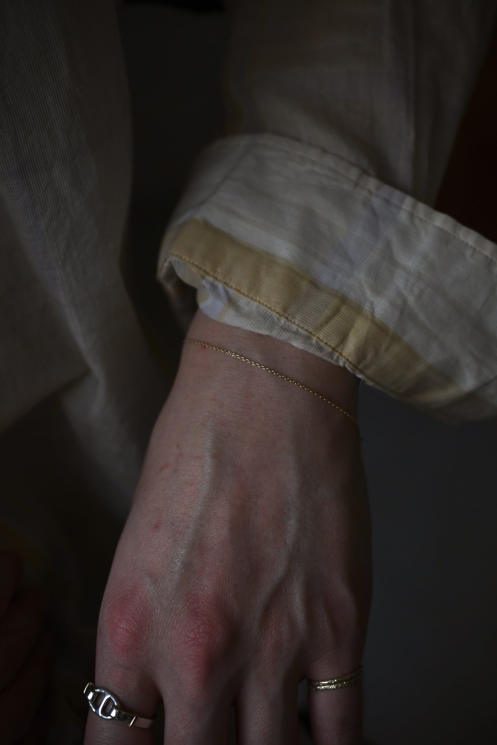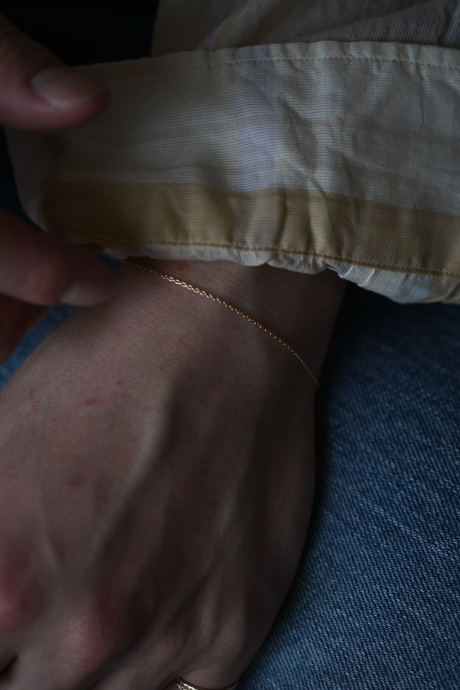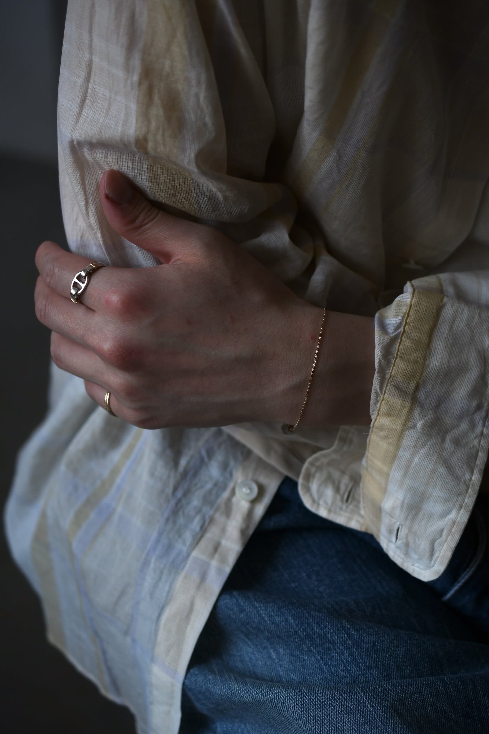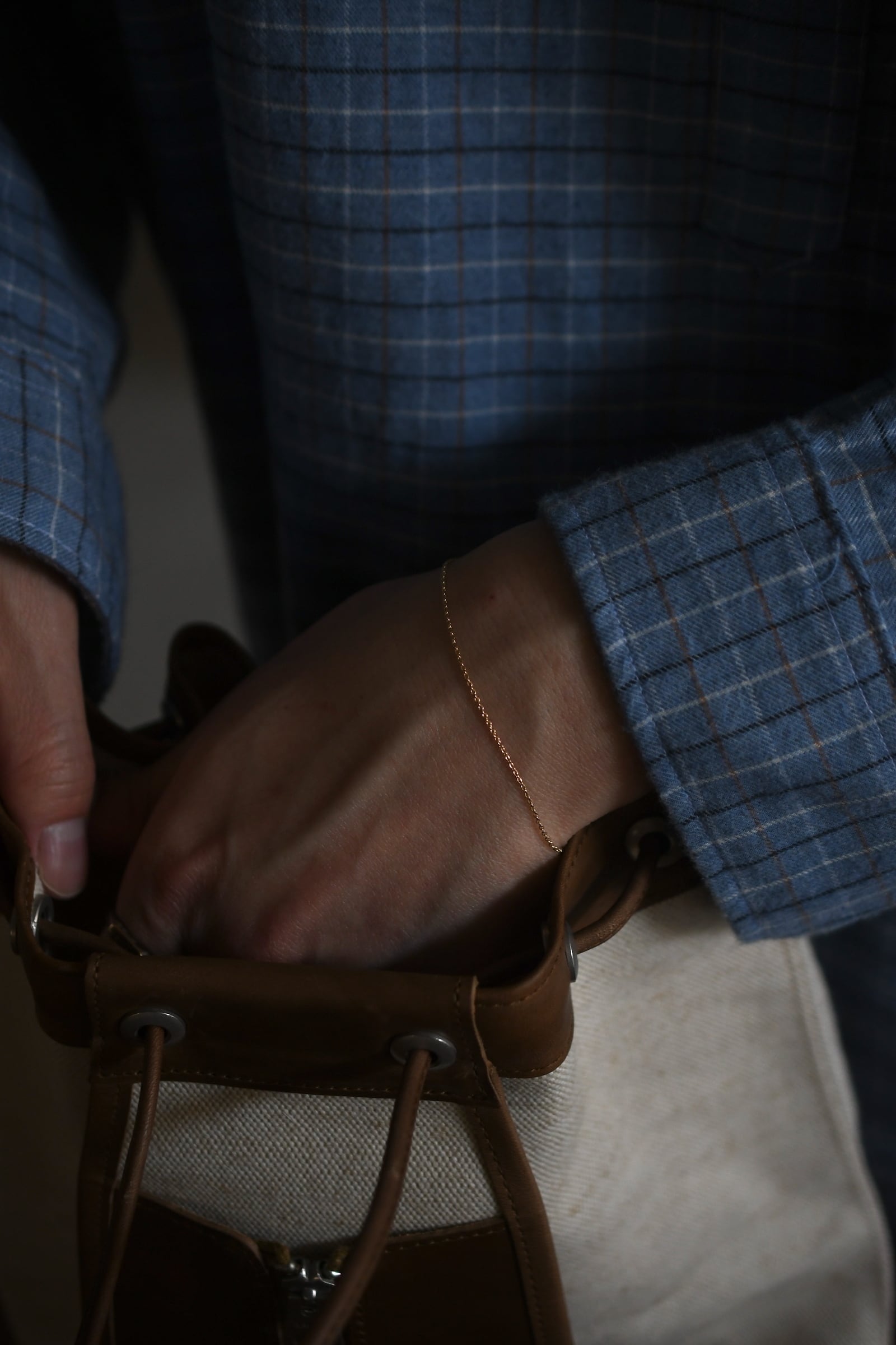 繊細なあずきタイプのゴールドチェーンで作ったミニマルなブレスレット。
